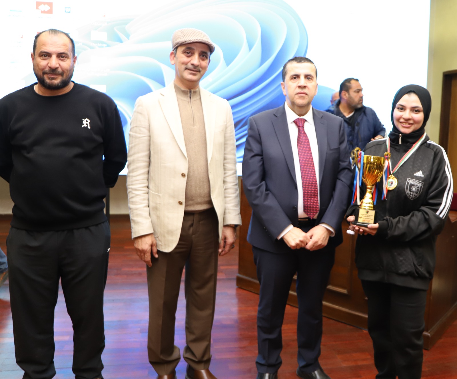 توج رئيس جامعة البلقاء التطبيقية الاستاذ الدكتور أحمد فخري العجلوني الفرق الفائزة في نهائيات البطولات الرياضية للاتحاد الرياضي للكليات الجامعية والجامعية المتوسطة في دورته العشرين بحضور الأساتذة نواب رئيس الجامعة وعميد شؤون الطلبة رئيس الاتحاد الرياضي للكليات الجامعية والجامعية المتوسطة الاستاذ الدكتور خالد الزعبي وعدد من عمداء الكليات ومدراء الوحدات والمراكز والدوائر وطلبة الجامعة. والقى عميد شؤون الطلبة الاستاذ الدكتور خالد الزعبي كلمة قال فيها ان ذكرى ميلاد قائد الوطن وملك القلوب هي ذكرى غالية على قلوبنا جميعا، نحتفل بها كل عام بإقامة بطولة القائد في عدد من متنوع من الألعاب الرياضي، مشيرا ان احتفال هذا العام جاء مع احتفالات المملكة باليوبيل الفضي لاستلام جلالة الملك عبدالله الثاني ابن الحسين المعظم سلطاته الدستورية، والذي يحكي قصة الإنجازات التي شيدها الاردنيون بقيادة جلالة الملك، لافتا ان جامعة البلقاء التطبيقية وبتوجيهات مباشرة من رئيسها الاستاذ الدكتور أحمد فخري العجلوني حرصت على دعم الرياضة والرياضيين المميزين والمتفوفين من طلبة الجامعة ممن تمكنوا من الحصول على البطولات وتحقيق الإنجازات على الصعيدين المحلي والدولي. وتضمن الحفل عرض فيديو عن مسيرة جلالة الملك المفدى منذ تسلمه سلطاته الدستورية في العام ١٩٩٩ بالإضافة إلى فيديو تعريفي عن مسيرة الاتحاد الرياضي للكليات الجامعية والجامعية المتوسطة. وفي ختام الحفل توج رئيس الجامعة الاستاذ الدكتور أحمد فخري العجلوني بحضور رئيس الاتحاد الرياضي للكليات الجامعية والجامعية المتوسطة الاستاذ الدكتور خالد الزعبي الفرق الفائزة في نهائيات بطولات الاتحاد الرياضي للكليات الجامعية والجامعية المتوسطة بالإضافة إلى تكريم منتخب الجامعة لكرة الطاولة للطالبات لحصوله على المركز الأول على مستوى الجامعات الاردنية، وتكريم المرحوم الدكتور منذر كريشان عميد كلية الزرقاء الجامعية الأسبق نائب رئيس الاتحاد. واسفرت نهائيات الاتحاد الرياضي للكليات الجامعية والجامعية المتوسطة بدورته العشرين على النحو التالي: حصل فريق كلية الهندسة التكنولوجية على المركز الأول في بطولة كرة السلة طالبات ٣*٣ فيما حل فريق كلية الاميرة رحمة الجامعية في المركز الثاني. كما حصل فريق مر كز الجامعة في بطولة كرة السلة ٣*٣ للطلاب فيما حصل فريق كلية الهندسة التكنولوجية على المركز الثاني.وحصل فريق كلية الخوارزمي في بطولة الكرة الشاطئية للطالبات على المركز الأول فيما حصل فريق كلية اربد الجامعية على المركز الثاني. كما حصل فريق كلية اربد الجامعية على المركز الأول في بطولة كرة الطائرة الشاطئية للطلاب فيما حل فريق مركز الجامعة بالمركز الثاني. وعلى صعيد الريشة الطائرة فردي طالبات حل فريق مركز الجامعة بالمركز الأول فيما حل فريق كلية الخوارزمي بالمركز الثاني. وحصل فريق مركز الجامعة على المركز الأول في بطولة الريشة الطائرة زوجي طالبات فيما حل فريق كلية الطفيلة بالمركز الثاني. وفي بطولة الريشة الطائرة فردي طلاب حصل فريق كلية لومنيوس على المركز الأول وحل فريق مركز الجامعة على المركز الثاني. وفي بطولة الريشة الطائرة زوجي طلاب حصل فريق كلية الطفيلة على المركز الأول فيما حصل فريق مركز الجامعة على المركز الثاني. وفي بطولة الطائرة طالبات حصل فريق كلية اربد الجامعية على المركز الأول فيما حصل فريق كلية الخوارزمي على المركز الثاني. كما حصل فريق كلية الكرك الجامعية على المركز الأول في بطولة الطاولة طلاب فيما حصل فريق كلية الطفيلة على المركز الثاني. وفي بطولة اليد حصل فريق مركز الجامعة على المركز الأول فيما حصل فريق كلية الهندسة التكنولوجية على المركز الثاني. كما تسلم جوائز كأس الاتحاد الشامل طالبات عميد شؤون الطلبة الاستاذ الدكتور خالد الزعبي، ووسام الاتحاد للمشرف الرياضي الكابتن إيناس ابو شقراء. وتسلم جوائز كأس الاتحاد الشامل طلاب نائب عميد كل