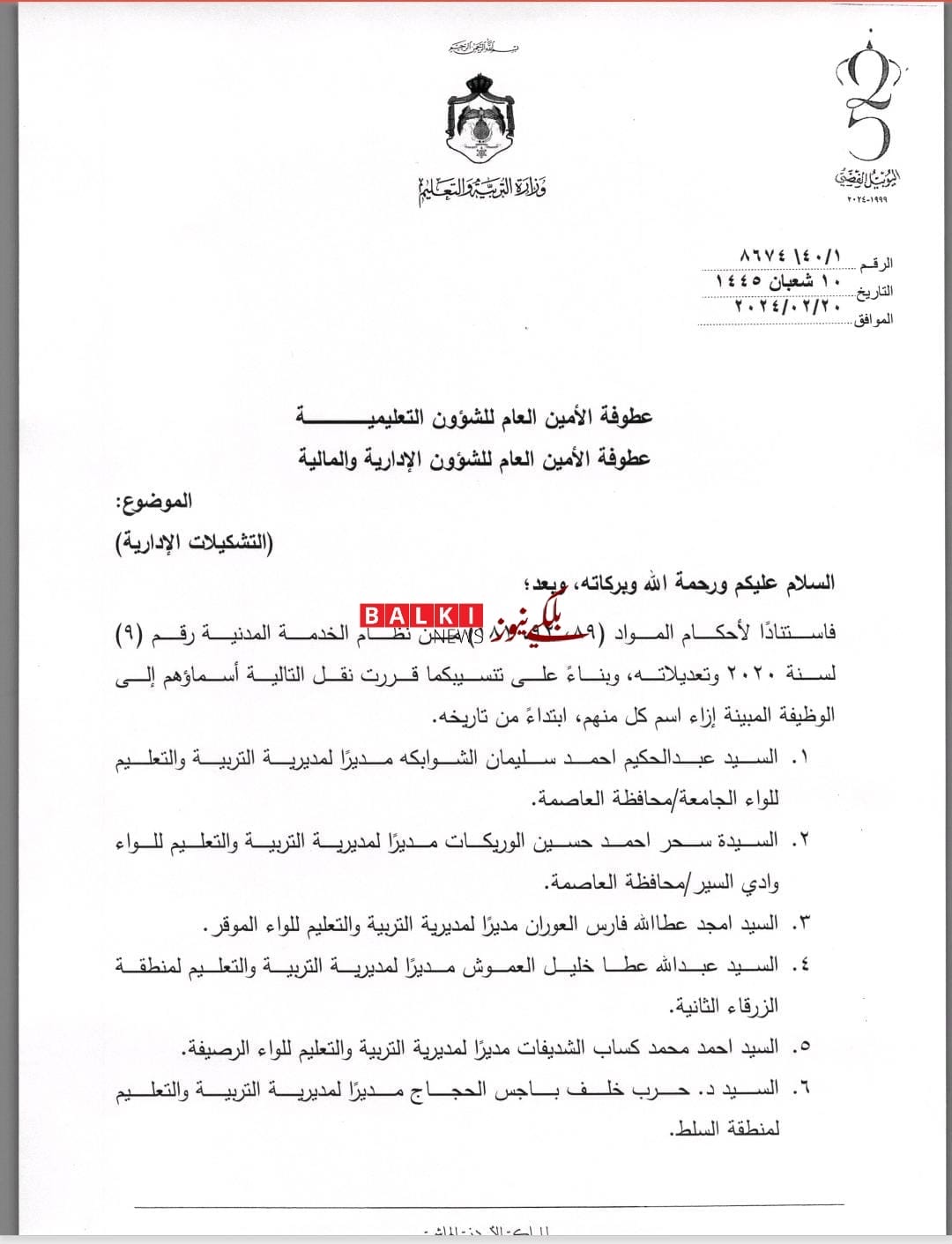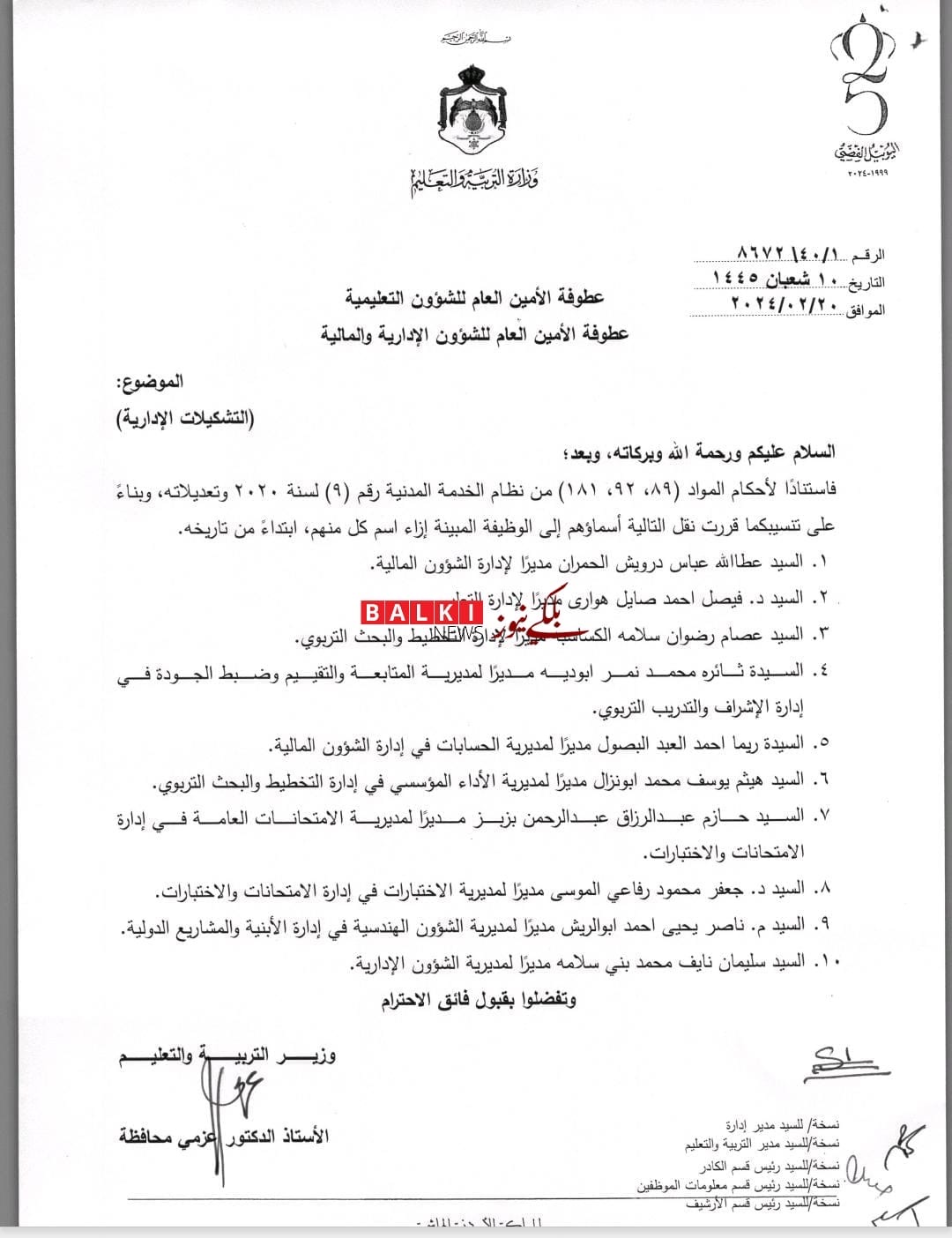 عاجل | تشكيلات واسعة في وزارة التربية والتعليم - اسماء