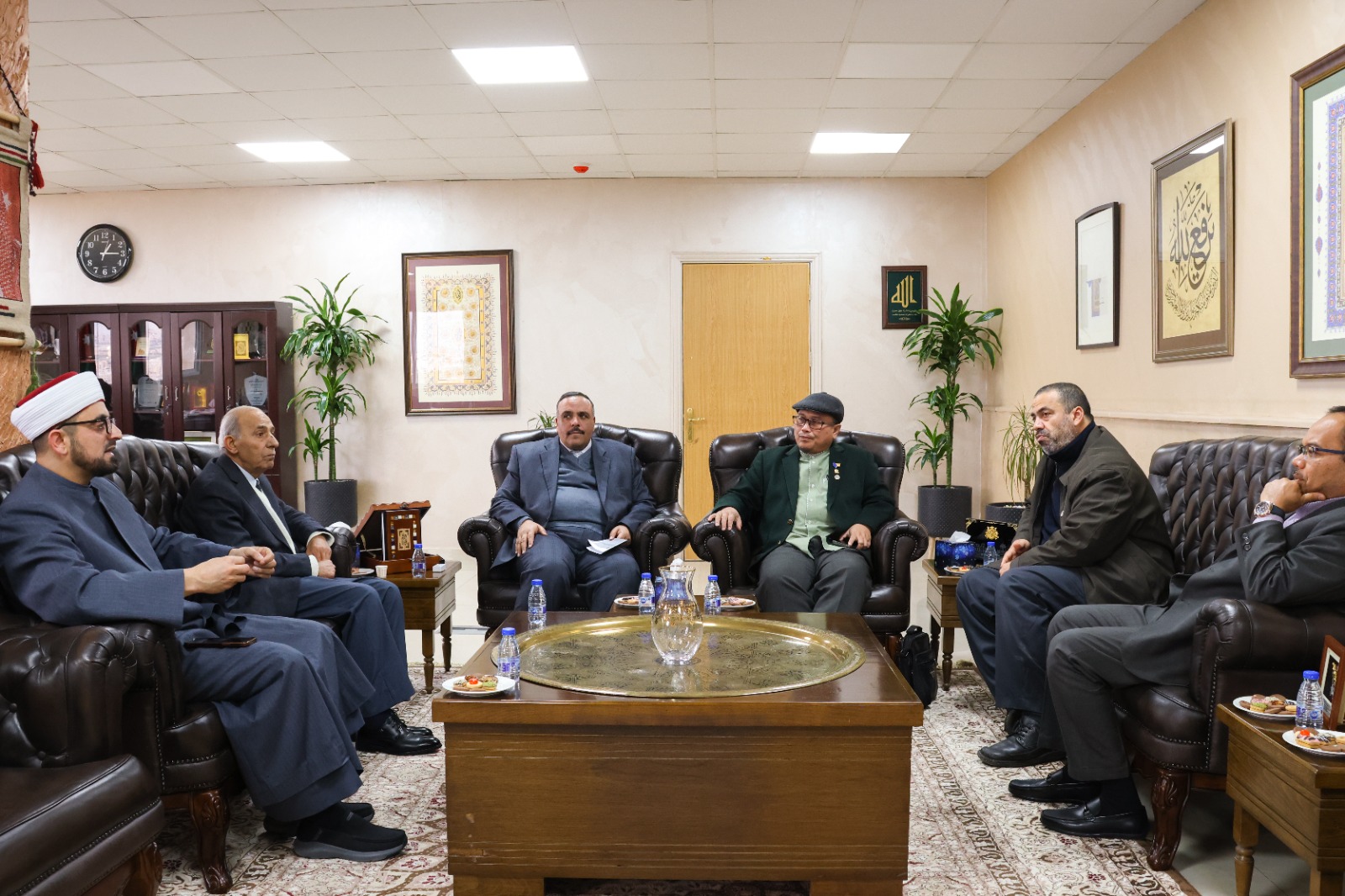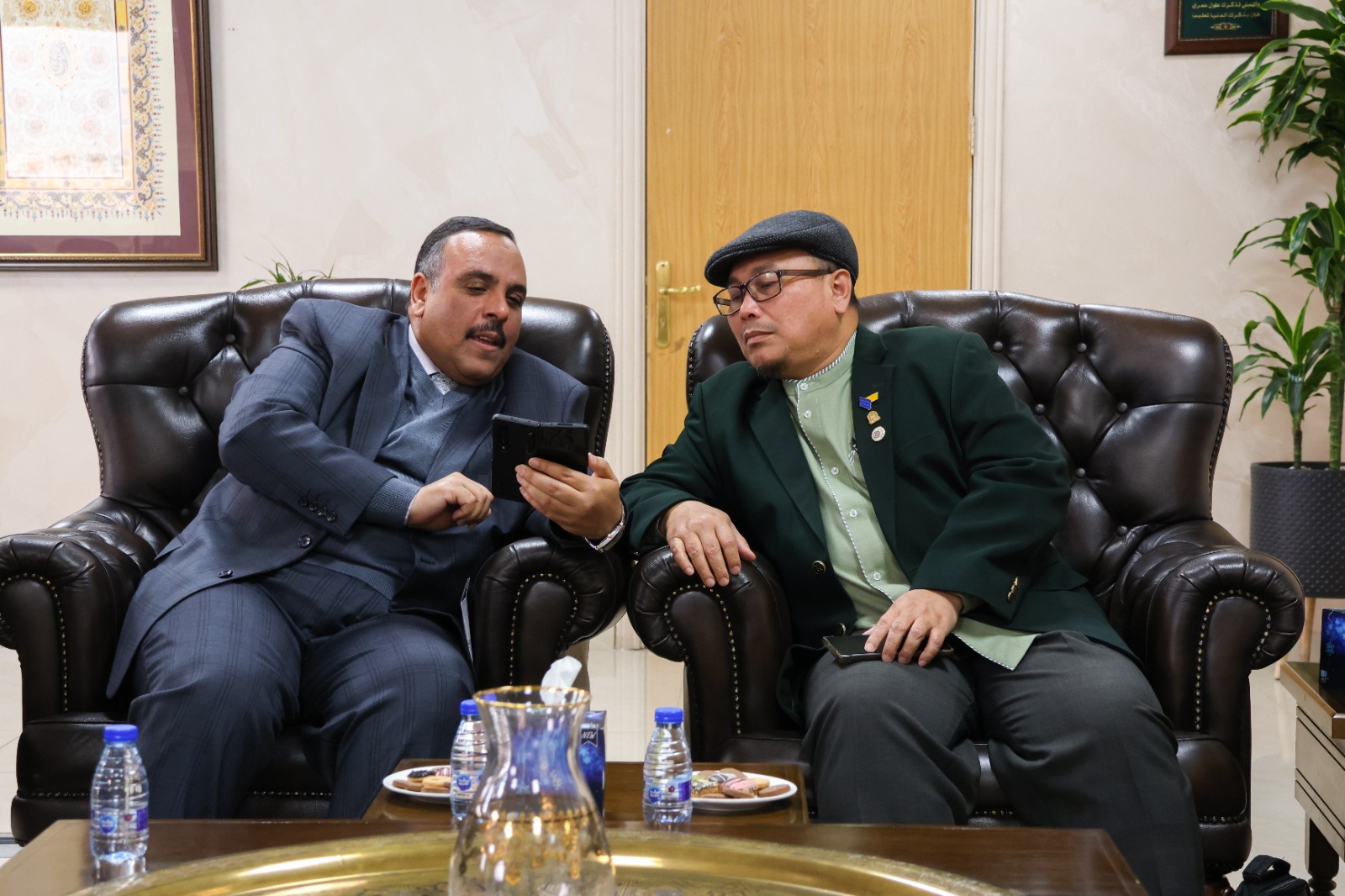 بحث رئيس جامعة العلوم الإسلامية العالمية الأستاذ الدكتور جعفر محمود الفناطسة مع وفد من جامعة كلية بهانج الماليزية "UCYP" تعزيز التعاون بين الجانبين، ضم كلا من الأستاذ الدكتور أزهر بن جعفر عميد شؤون الطلبة والدكتور أحمد فريد بن محمد مدير مركز تطوير اللغة العربية والأستاذ كمال العقربي محاضر أول في مركز اللغة العربية.