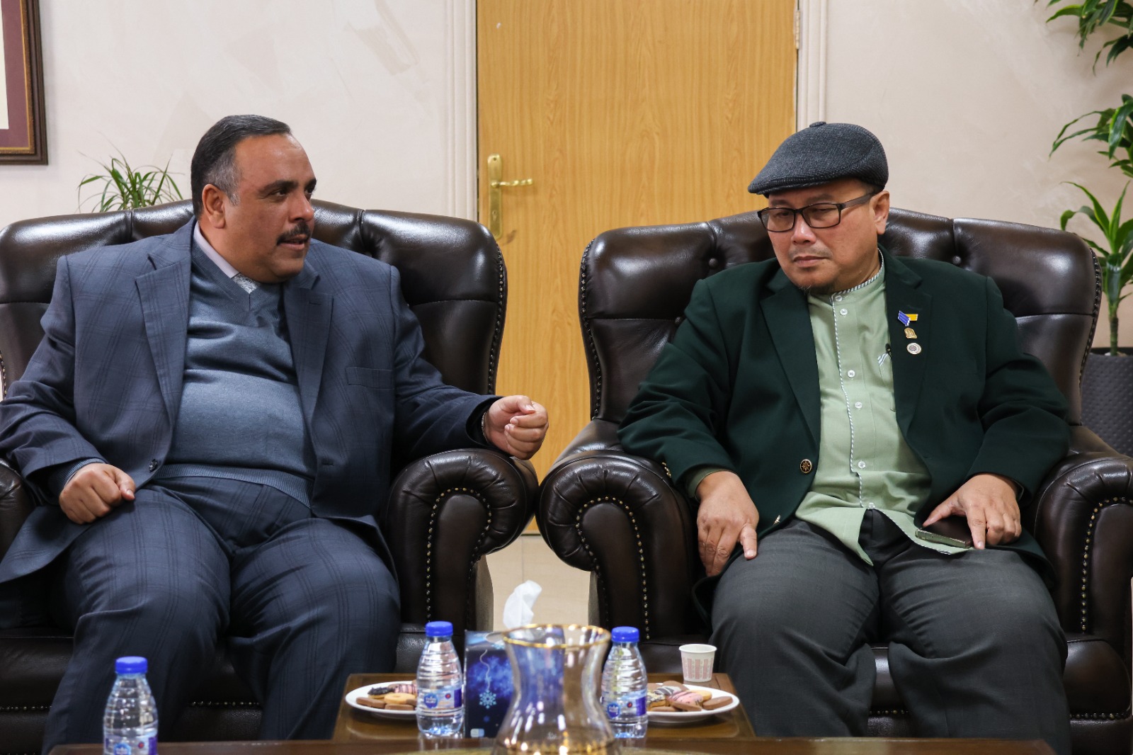 وأكد الفناطسة خلال اللقاء الذي حضره من جانب الجامعة مساعد الرئيس الدكتور غالب الحوراني وعميد كلية الفقه الشافعي الدكتور أمجد رشيد، حرص الجامعة على خدمة الطلبة الماليزيين وتقديم الخدمات الأفضل لهم من خلال تعليم اللغة العربية، ونشر تعاليم الدين الإسلامي القائم على الوسطية والاعتدال، مشيراً إلى أن الجامعة تعامل الطلبة الماليزيين معاملة الطلبة الأردنيين في جميع النواحي.