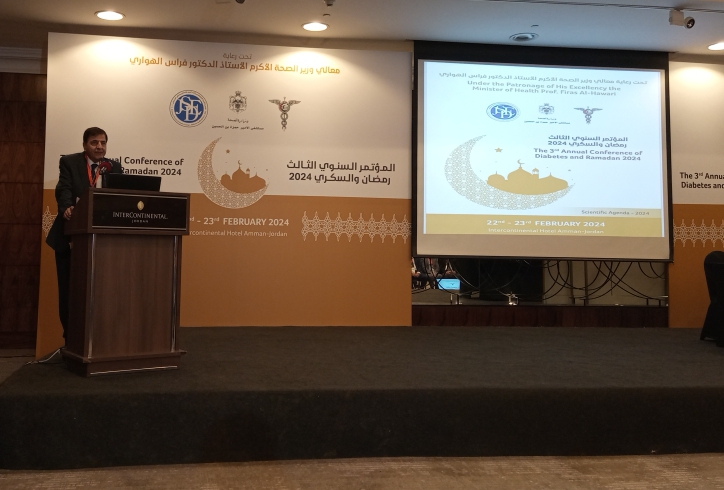 وبين أن الاحصائيات تشير إلى أن عدد المسلمين في العالم بلغ في عام 2023 ملياري وربع مليار نسمة، وان55 مليون منهم مصاب بالسكري، وان 73% من المرضى يصومون شهر رمضان المبارك.