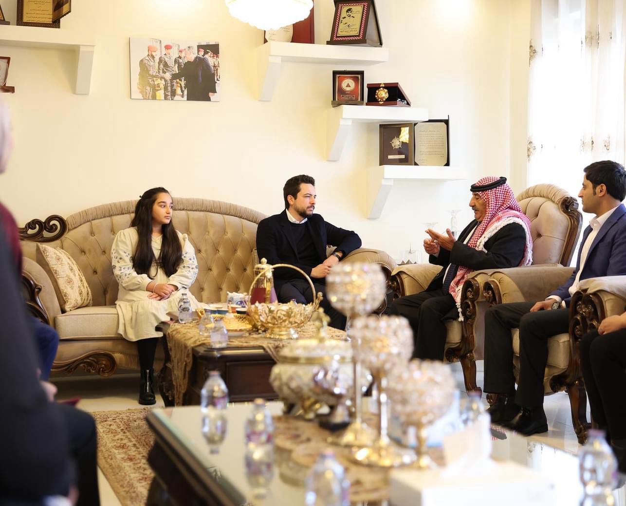 زار سمو الأمير الحسين بن عبدالله الثاني، ولي العهد، اليوم الأحد، أسرة الشهيد الرائد راشد الزيود، تزامنًا مع الذكرى السنوية الثامنة لاستشهاده، التي صادفت يوم الجمعة الماضي.
