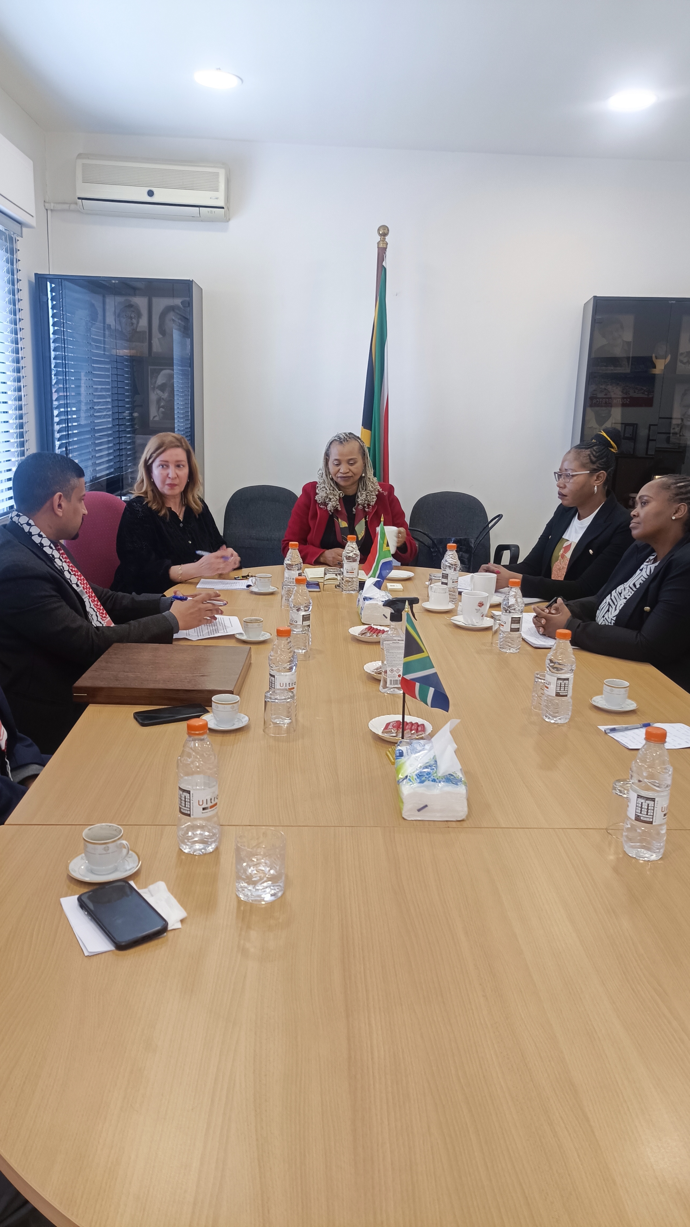 من جهتها رحبت سفيرة جنوب إفريقيا، (تسيلاني موكوينا) بهذه الزيارة، وأبدت اعتزازها بموقف الأردن الداعم للقضية الفلسطينية، فضلاً عن مواقفه الإنسانية في قضايا اللجوء وتقديم المساعدات الإنسانية لمن يحتاجها، واشارت إلى اواصر الصداقة بين البلدين، و تحدثت عن مبدأ الاوبونتو وهو مبدأ متأصل في ثقافتهم ويقول المبدأ اذا كنت انت موجود فأنا كجنوب أفريقي موجود .