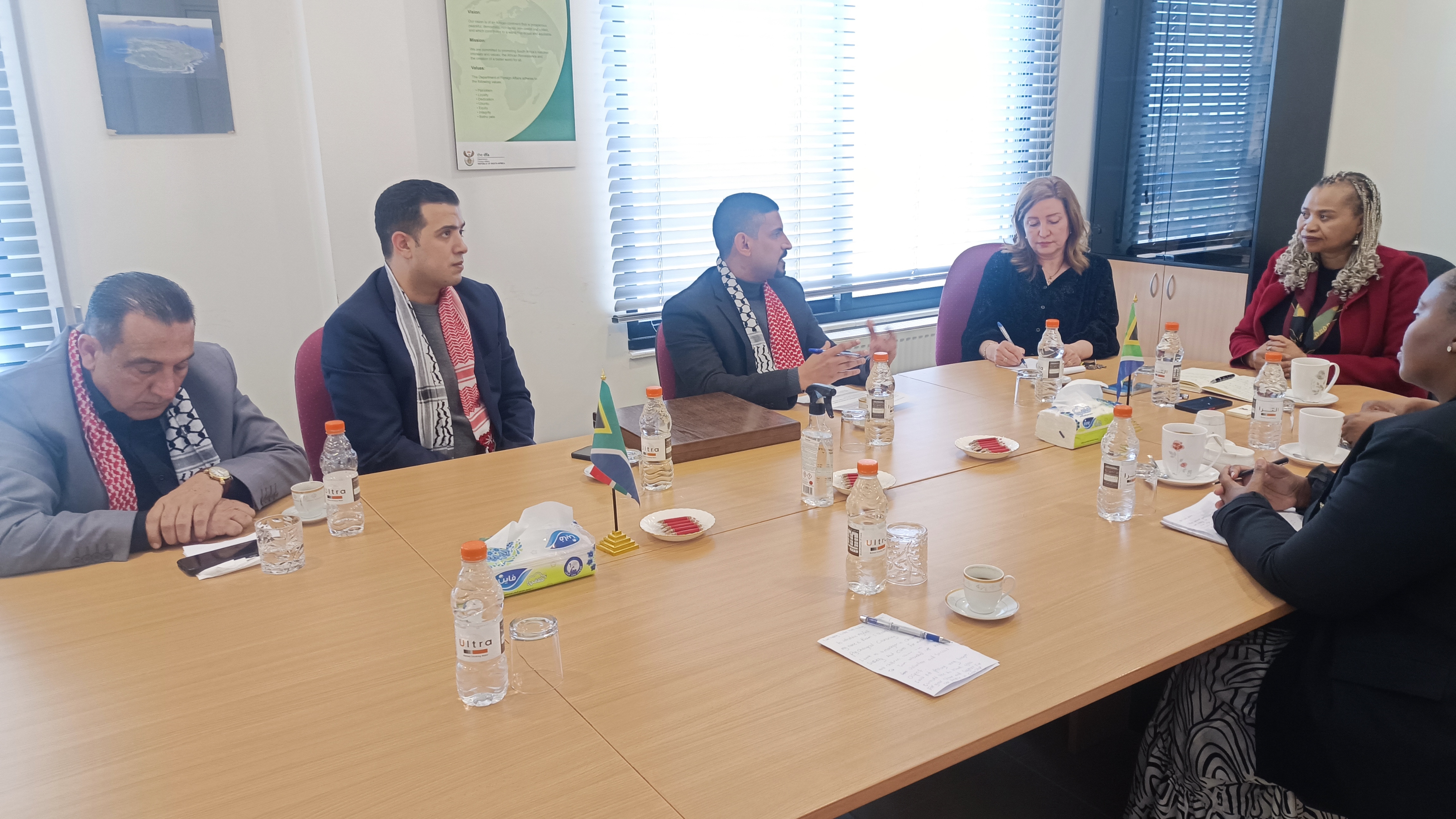 وأشاد السيد أكرم بدران بموقف جنوب أفريقيا المناصر للقضايا الإنسانية في العالم و قضية فلسطين و قطاع غزة خصوصاً وشكر بدران سعادة السفيرة و أكد ان الأردن قيادة و شعب يقفون بجانبهم في القضية العادلة المرفوعة أمام محكمة العدل.