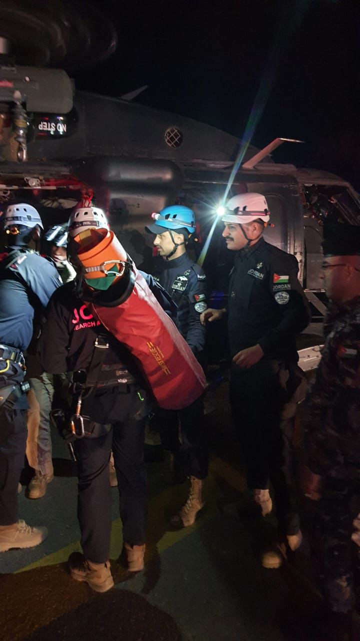 * مساندة من نشامى القوات المسلحة –سلاح الجو الملكي لإخلاء المصابين من خلال طائرة رافقها فريق البحث والإنقاذ الدولي.