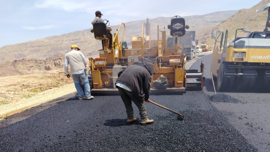 إنجاز أعمال الخلطات الإسفلتية في الجزء الثاني من مشروع طريق كثربا - الأغوار