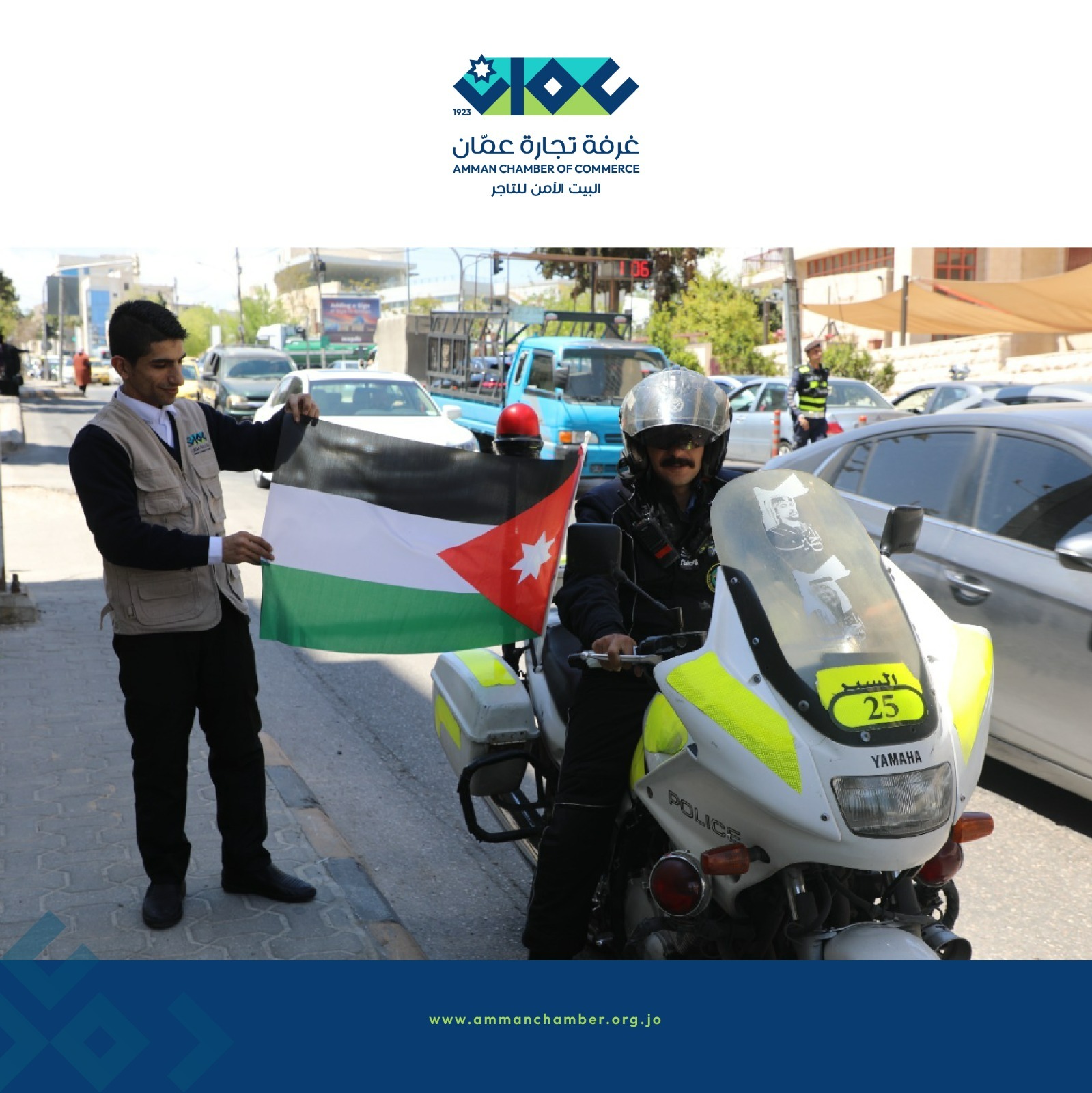 شاركت غرفة تجارة عمان اليوم الثلاثاء في حملة "علمناعال" من خلال توزيع الأعلام على المواطنين والسائقين في منطقة الشميساني، إحتفاءً باليوم الوطني للعلم الأردني، الذي يصادف 16 نيسان من كل عام.