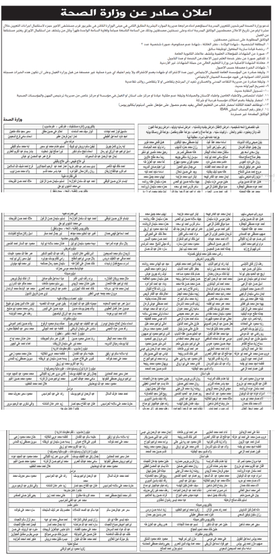 بالاسماء .. مدعوون للتعيين في وزارة الصحة