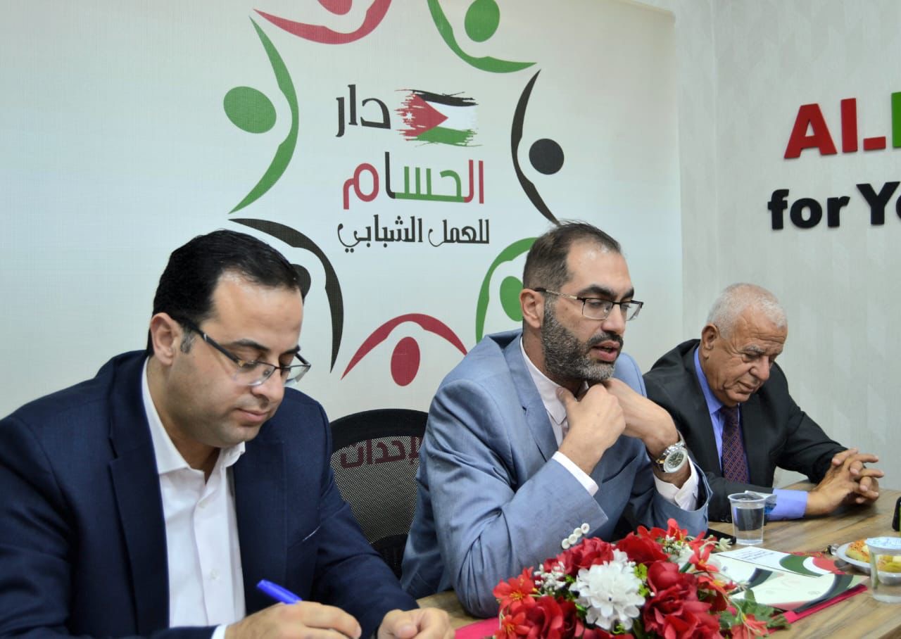 استضافت دار الحسام للعمل الشبابي النائب السابق قيس زيادين نائب الامين العام للحزب المدني الديمقراطي في جلسة سياسية حوارية بعنوان {أهمية امتلاك الاحزاب لون سياسي}