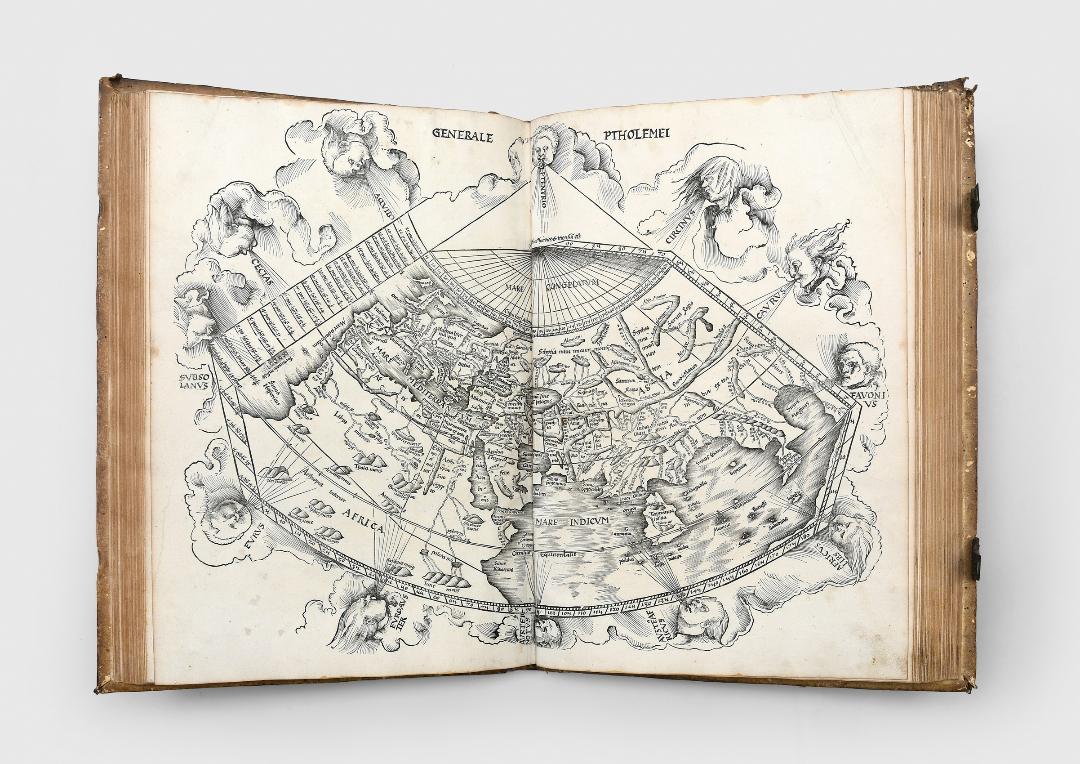 ويرجع تاريخ هذه النسخة الاستثنائية من أطلس بطليموس الشهير التي تتميز بغلافٍ حديث إلى العام 1513، وتعتزم دار بيتير هارينجتون عرضها للبيع بقيمة مليون جنيه استرليني (حوالي 4,6 مليون درهم إماراتي) في جناح الدار بمعرض أبوظبي الدولي للكتاب، وهي تضم 27 خريطة وفقاً لمفهوم بطليموس، إلى جانب 20 خريطة حديثة تم رسمها وفقاً لآخر ما تم اكتشافه آنذاك.