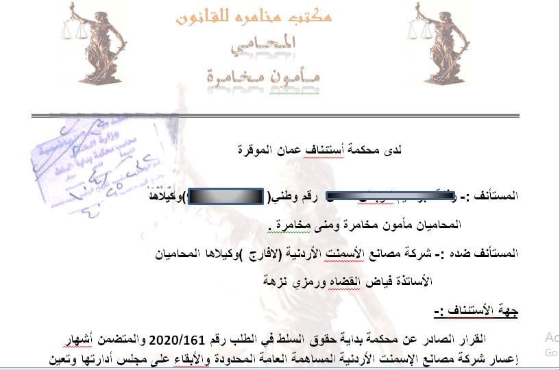 استأنف المحامي مأمون المخامرة قرار الإعسار لشركة مصانع الأسمنت بالفحيص وقال لبلكي نيوز :