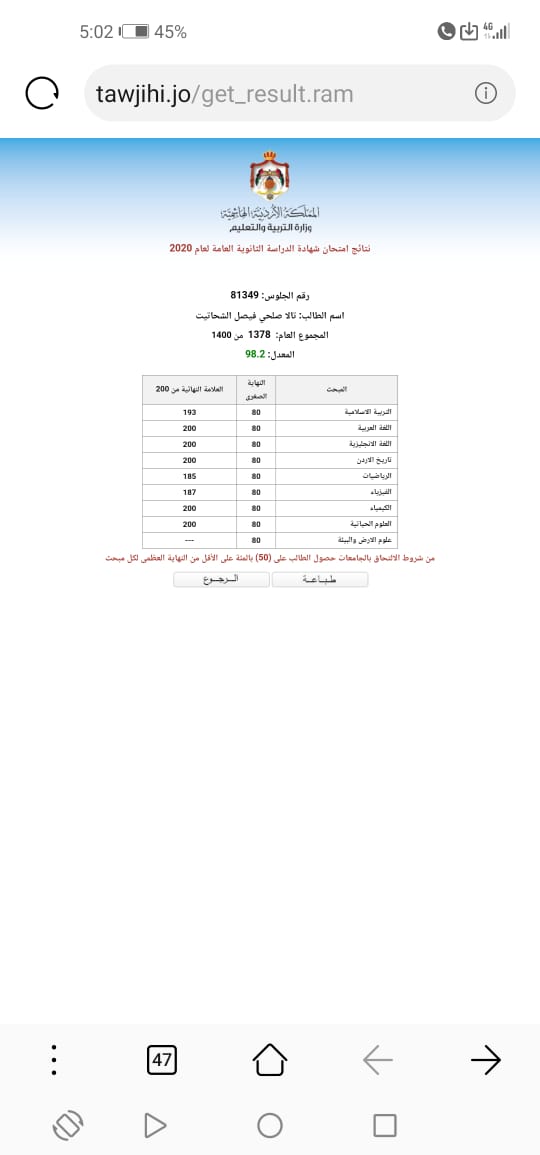 أسرة بلكي نيوز تتقدم بالتهنئة والتبريك من عطرفة البروفيسور صلحي الشحاتيت بمناسبة تفوق ابنته تالا بامتحان الثانوية العامة وحصولها على معدل ( ٩٨،٢ ) الفرع العلمي .