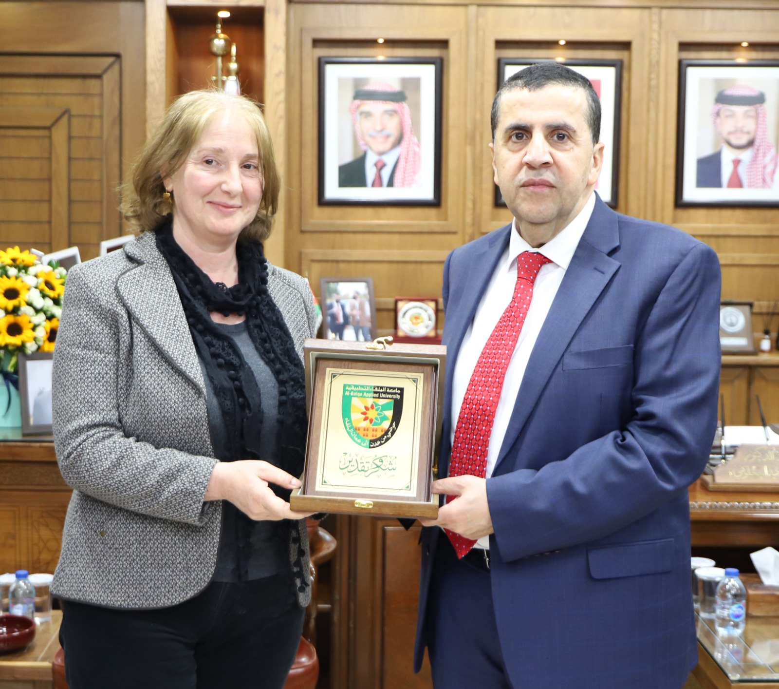 " استقبل رئيس جامعة البلقاء التطبيقية الأستاذ الدكتور أحمد فخري العجلوني في مكتبه سعادة سفير الإتحاد الأوروبي بيير- كريستوف تشاتزيسافاس. الأستاذ الدكتور أحمد فخري العجلوني رحب بسعادة سفير الإتحاد الأوروبي والوفد المرافق له حيث قدم الدكتور العجلوني ايجازاً عن الجامعة وكلياتها والتخصصات التي تدرس فيها ، مشيراً إلى أن جامعة البلقاء التطبيقية تعد أكبر جامعة وطنية في الأردن ولها كليات منتشرة في جميع محافظات المملكة كما وتعد أيضاً جامعة تطبيقية بإمتياز .
