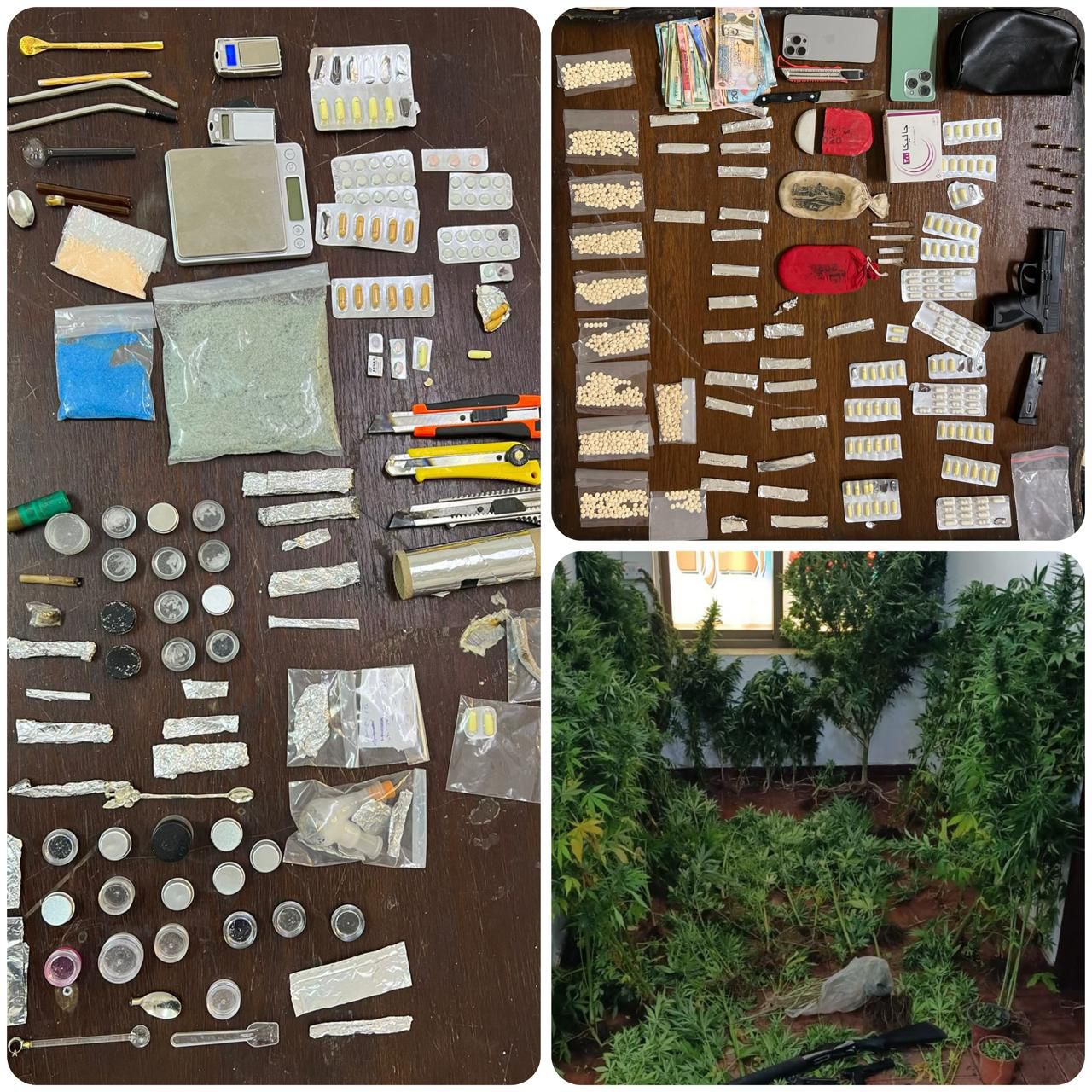 كما وتم في العاصمة كذلك وبعد مراقبة وتحقيق وجمع موسّع للمعلومات مداهمة وإلقاء القبض على أب وثلاثة من أبنائه، امتهنوا ترويج وبيع المخدرات على المتعاطين في العاصمة وضبط داخل منزلهم على 28 كف حشيش و 6000 حبة مخدرة وكمية من مادتي الكوكايين والكريستال المخدرة وسلاح ناري ، كما جرت وسط العاصمة مداهمة وإلقاء القبض على مروجَين بحوزتهما 20 كف حشيش و 2000 حبة مخدرة .