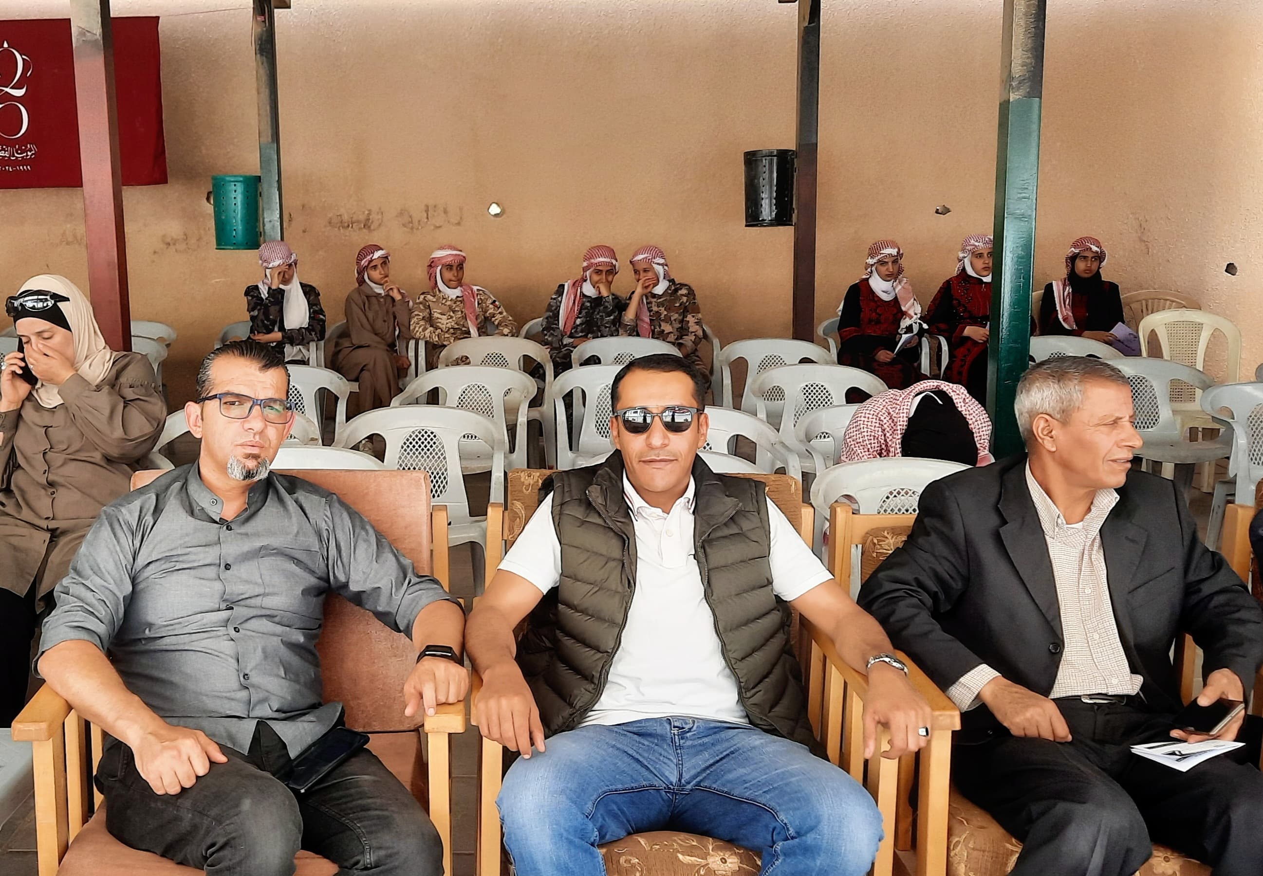 مندوبا عن مدير التربية والتعليم لمنطقة القصر رعى مدير الشؤون الادارية والمالية السيد أحمد المحادين الحفل الذي اقامته شبكة مدارس قضاء الموجب بعنوان رمز هويتنا عزتنا وكرامتنا بمناسبة عيد الاستقلال 78 وذلك في مدرسة المغير الثانوية للبنات .