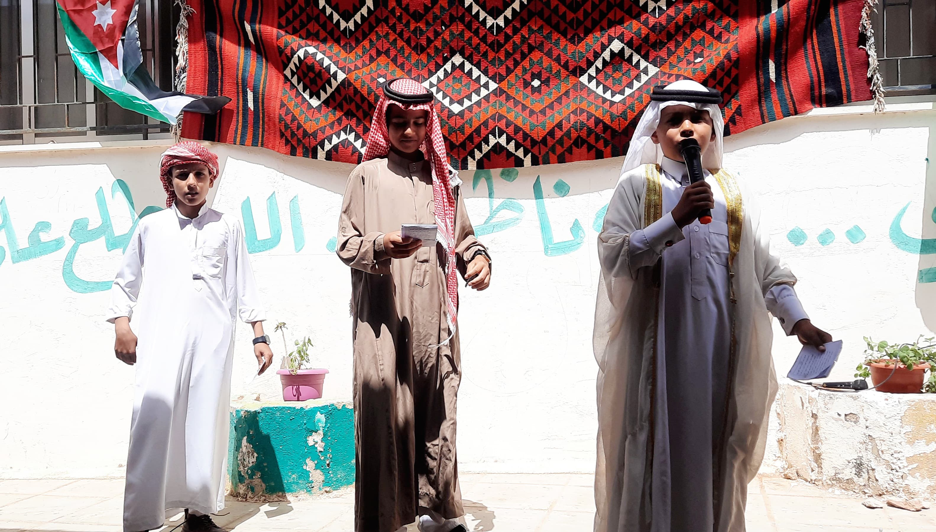 الحفل والذي تضمن قصائد ومناظرات شعرية وعروض فلكلورية ومسرحية أدتها طالبات وطلبة مدارس شبكة قضاء الموجب تغنت بالوطن وقيادته وإنجازات الاستقلال.