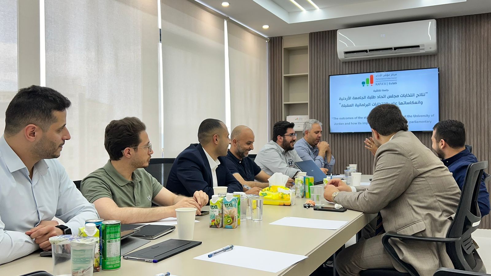 عقد مركز مؤشر الأداء | كفاءة، يوم أمس السبت 25 أيار / مايو 2024، جلسة نقاشية بعنوان "نتائج انتخابات مجلس اتحاد طلبة الجامعة الأردنية وانعكاساتها على الانتخابات البرلمانية المقبلة" جاءت الجلسة ضمن الجلسات النقاشية الأسبوعية التي يعقدها المركز في مقره، بحضور مجموعة من المتحدثين المختصين والمهتمين بالشأن السياسي والطلابي. وذلك بعد إعلان نتائج المشاركة الطلابية والتي تعتبر الأعلى في تاريخ الجامعة الأردنية حسب تصريح رئيسها معالي الأستاذ الدكتور نذير عبيدات، إذ بلغت نسبة المشاركة 52.52%، وحصدت فيها كتلة أهل الهمة 9 مقاعد بعد أن استحوذت على 3 مقاعد إضافية مقارنة بالانتخابات الجامعية الأخيرة عام 2019، فيما توزعت الـ 9 الأخرى 6 مقاعد لقائمة النشامى و3 للكرامة، وأشار المتحدثون إلى أن الانتخابات الجامعية جزء من المنظور العام للانتخابات البرلمانية القادمة، لكنها ليست انعكاساً كلياً لتوجهات المجتمع، إذ أن الطلبة لا يمثلون كافة أطياف وشرائح المجتمع الأردني، ونوهوا إلى أن التوقيت كان عاملاً مهماً وخدم كتلة أكثر من باقي الكتل خاصة التي تقف خلفها بعض التنظيمات السياسية "حسب راي بعض المتحدثين"، إلا أنه رسمياً لم تتبنى أي كتلة بشكل صريح برنامج أي حزب سياسي، بل تبنت حاجات الطلبة واهتماماتهم وتوجهاتهم، والاستثمار في القضايا الإقليمية وعلى رأسها العدوان الإسرائيلي على قطاع غزة الذي كان حاضراً في برامج الكتل جميعها، والذي أكد فيه المتحدثون أنه لم يكن لذلك أثر بالغ بحسم النتيجة بين كتلة وأخرى، كما أشار البعض إلى أن المناطقية كان لها دور في الانتخابات الجامعية، وأن غالبية الكتل افتقدت التنظيم الداخلي مقارنة بكتلة أهل الهمة، بالإضافة إلى أن الخبرة والتجربة الانتخابية لعبت دوراً مهماً في حصد الأصوات عند بعض الكتل، وأضاف بعض المتحدثين إلى أن التمويلات للحملات الانتخابية تمايزت بين الكتل ما أدى إلى ظهور بعض الكتل أمام أخرى .