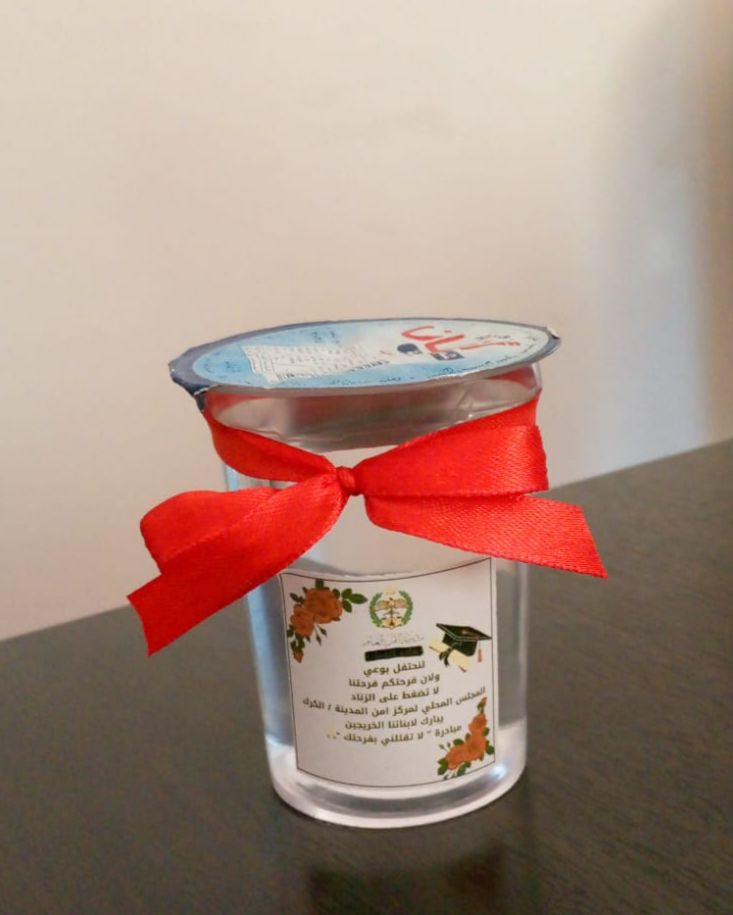 امام البوابة الشمالية لجامعة مؤتة حيث تم إستقبال ذوي الخريجين واهاليهم وقدمت لهم التهاني والتبريكات وقامت مرتبات الشرطة المجتمعية وشرطة الكرك بالتعاون مع اعضاء مجلس محلي المدينة بتوزيع المياة الباردة والبروشورات لذوي الخريجين ، والتي تحمل رسالة مديرية الامن العام والمتمثلة بعدم إطلاق العيارات النارية وتتوشح في عبارات التهنئة والتبريك بأسم مديرية الأمن العام ، وتدعوهم للتعبير عن مظاهر الفرح بشكل إيجابي بعيدا عن السلوكيات السلبية بما يحقق مفهوم الأمن والسلم المجتمعي في جميع محافظات المملكة إنطلاقا من تخريج كوكبة من تلاميذ الفوج الثالث والثلاثون لجامعة مؤتة .