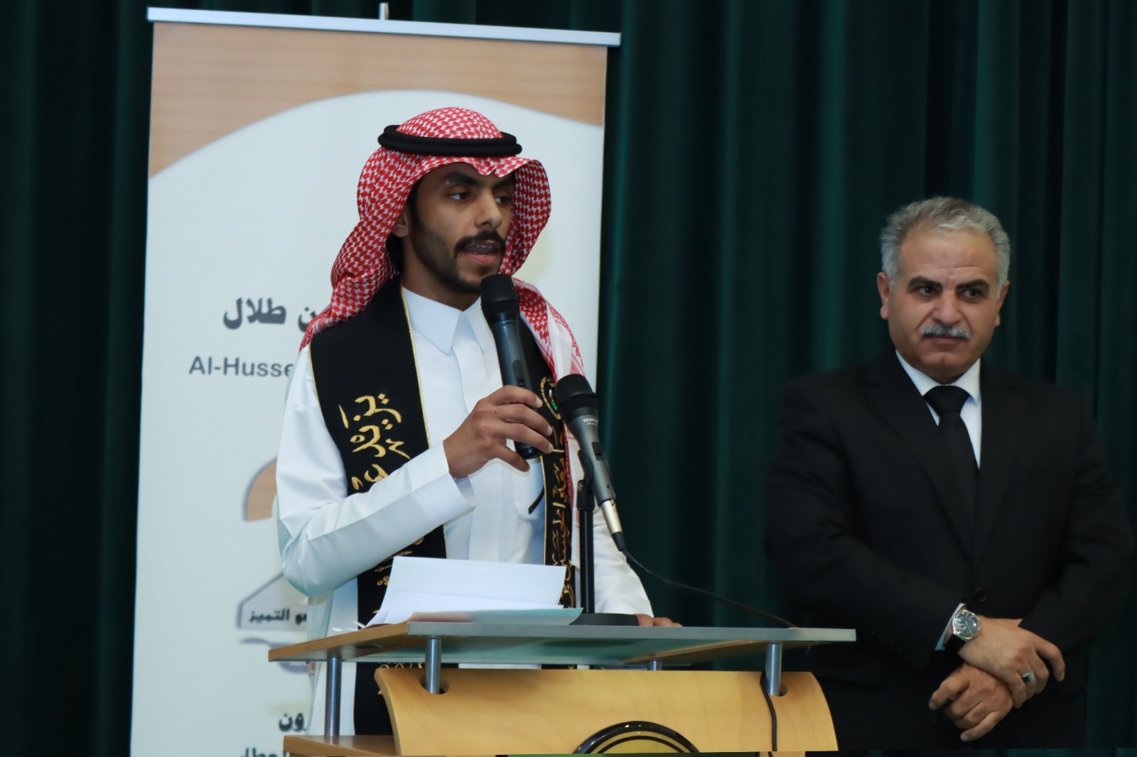 وفي كلمته هنأ رئيس جامعة الحسين بن طلال الأستاذ الدكتور عاطف الخرابشة الطلبة السعوديين المتوقع تخرجهم الدارسين في البرنامج الدولي الدبلوم العام في التربية في كلية العلوم التربوية، داعياً الطلبة أن يكونوا سفراء وسفيرات حاملين اسم جامعة أغلى الرجال الحسين بن طلال بكل فخر واعتزاز، وأن ينعكس ما تعلموه في الجامعة في أماكن عملهم.
