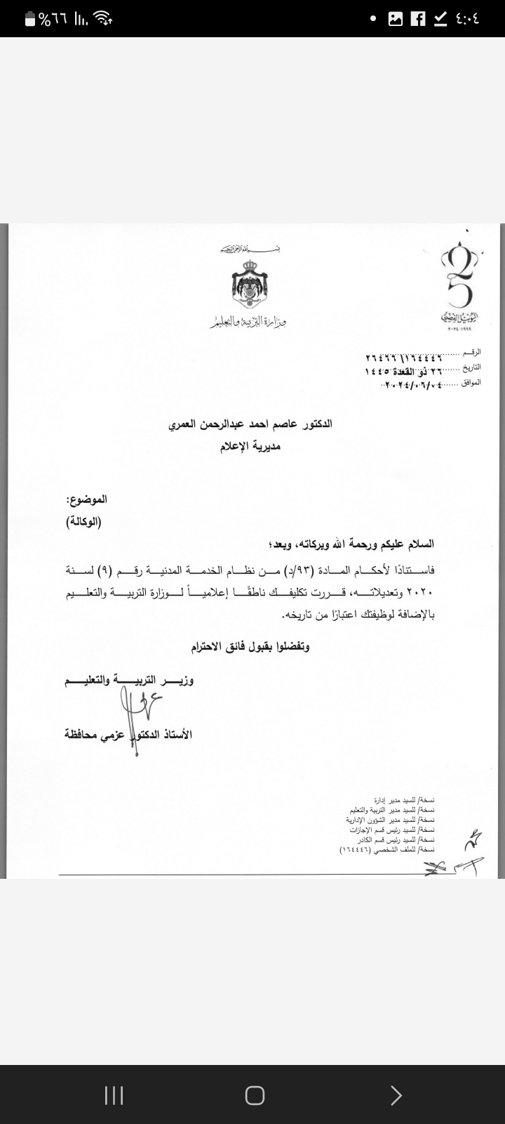 يأتي هذا التعيين في إطار تعزيز التواصل الفعّال بين الوزارة والجمهور، وتحسين نقل المعلومات والأخبار المتعلقة بقطاع التعليم.
