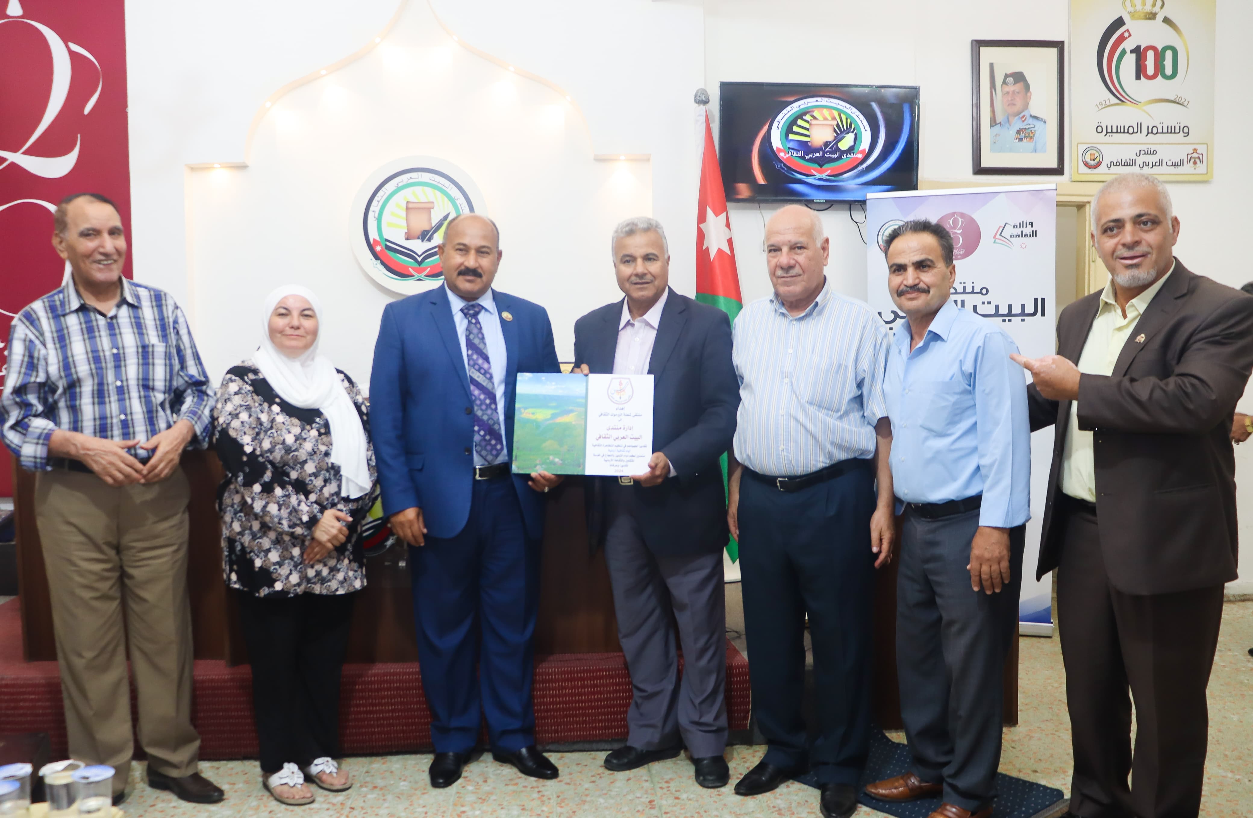استضافت ايام ثقافية اردنية في رابع فعالياتها الاثنين 8 /7 في مقر المنتدى في عمان ملتقى شعلة اليرموك الثقافي ممثلا برئيسه الدكتور إبراهيم الطيار والهيئة الادارية حيث قدم د. الطيار كلمة رحب فيها بالحضور وشكر منتدى البيت العربي الثقافي على هذه المبادرة المميزة وهنأ الوطن بأعياده وكذلك تحدث عن ملتقى شعلة اليرموك الثقافي الذي تأسس عام 2019 واكد أن من أهدافه الرقي بالمشهد الثقافي في سحم الكفارات وفي لواء بني كنانة وأضاف أن ملتقى شعلة اليرموك يحرص على إقامة الشراكات سواء في اربد أو أي محافظة من محافظات المملكة بعد ذلك شارك الأستاذ الدكتور محمد غوانمة عميد كلية الآداب والفنون في جامعة اليرموك سابقا في كلمة حول المناسبة وحول الملتقى وعن أهمية منطقة لواء بني كنانه تاريخيا وسياحيا وحضورها على مدى التاريخ