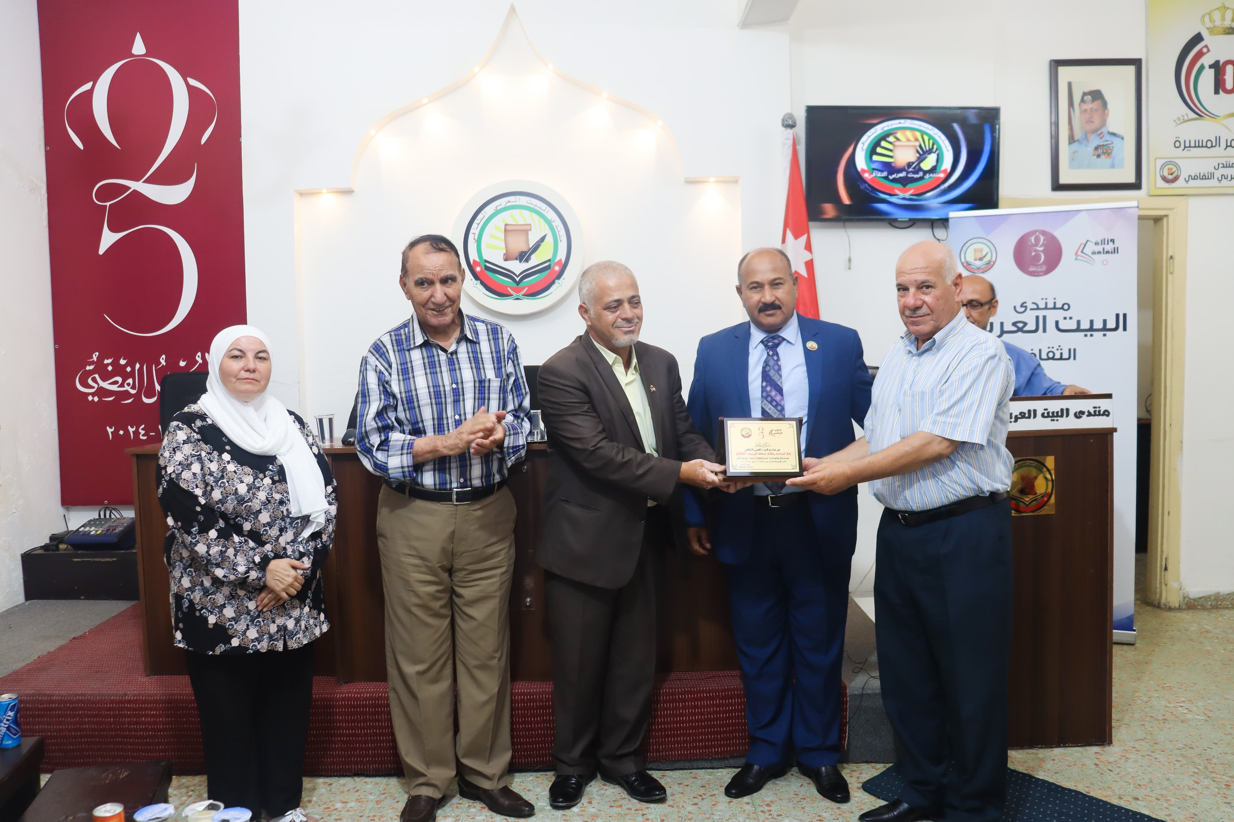 ومن ثم قدّم الشعراء محمد علي العودات والشاعر د. رامي العودات قراءات شعرية وطنية وجدانية تناسب المناسبة الوطنية كان شعر الزجل حاضرا في أمسية الأمس بمشاركة الأستاذ حسن ناجي وختاما قدم الفنان نبيل الشرقاوي مقطوعات موسيقية تراثية لاقت استحسان الحضور وذائقتهم العالية قدم الدكتور والهيئة الادارية درعا يمثل إهداء للمنتدى مرفقا بصورة للواء الكورة كما قدم الأستاذ صالح الجعافرة رئيس منتدى البيت العربي الثقافي بمعية معالي طه الهباهبة والأستاذة ميرنا حتقوة درعا يعبر عن الشكر والامتنان للمشاركة وشهادات شكر وتقدير للمشاركين