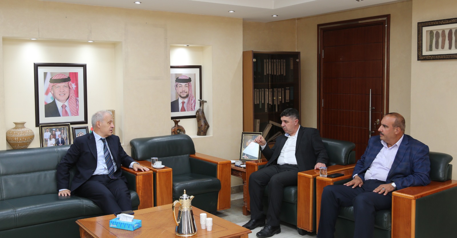 بحث أمين عام سلطة المياه المهندس وائل الدويري اليوم الاحد 14 تموز 2024 مع الرئيس التنفيذي لشركة مجموعة المطار الدولي( الشركة المسؤولة عن ادارة وتشغيل مطار الملكة علياء الدولي) نيكولا دفيليير بحضور مساعد الأمين العام عمر سلامة ورئيس إدارة علاقات الجهات الحكومية والشؤون الإدارية أمجد المجدوبة أوجه التعاون المشترك خاصة في مجالات تعزيز التزويد المائي والتوسع في إعادة استخدام المياه المعالجة للزراعة داخل المطار وتنفيذ حملات ترشيد وتوعية ضمن الجهود المتواصلة لتوفير المياه الصالحة للشرب مواجهة أثار التغير المناخي وتعزيز جهود المحافظة على المياه .