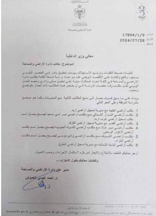 قرار بدمج مكاتب لدائرة الأراضي والمساحة