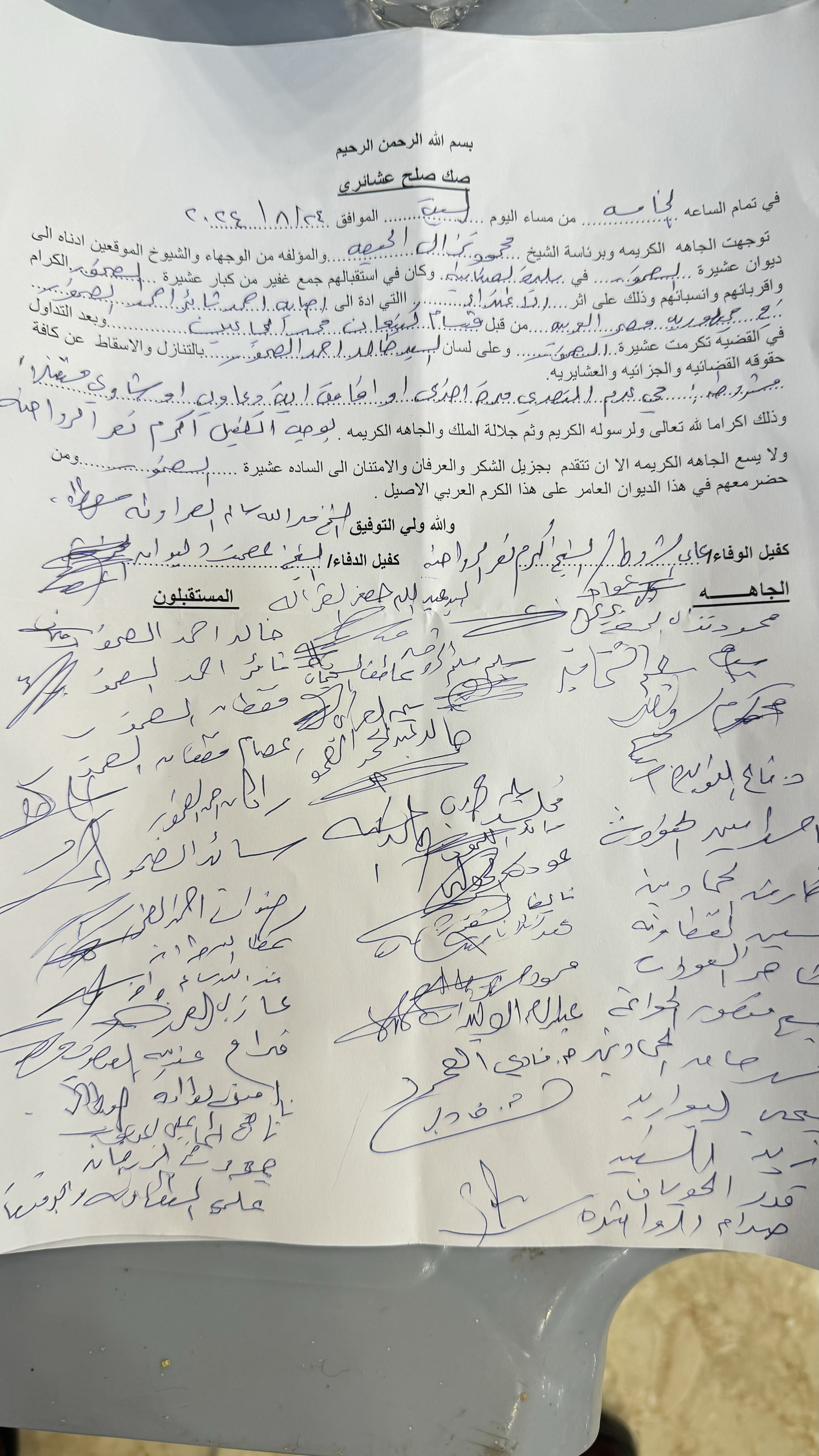 والجزائية اثر الاعتداء الذي تعرض له ابنهم احمد ثائر احمد الضمور على يد قسام كنيعان محمد الجماعين بني حميدة في جمهورية مصر العربية وذلك أكراما لله ورسوله وجلالة الملك والجاهة الكريمة