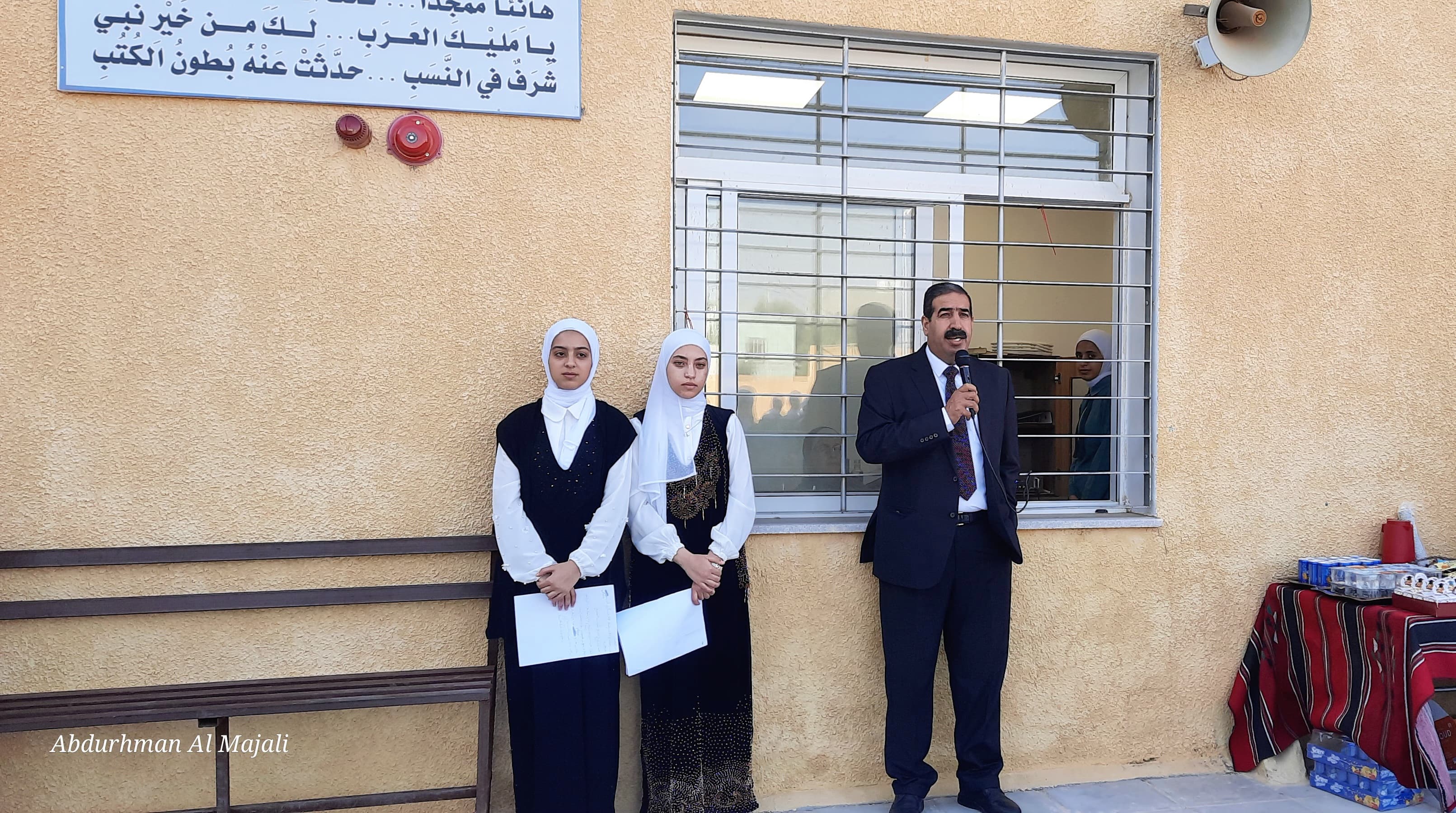 ضمن فعاليات الطابور الصباحي كرم مدير التربية والتعليم لمنطقة القصر الدكتور علي الفقرا اوائل التوجيهي لطالبات مدرسة الجدعا الثانوية للبنات بحضور رئيس شبكة مدارس الجدعا السيد علي المصاروة والمشرفة الادارية لمدارس الجدعا نجود المصاروة والمحرر الصحفي السيد عبد الرحمن المجالي .