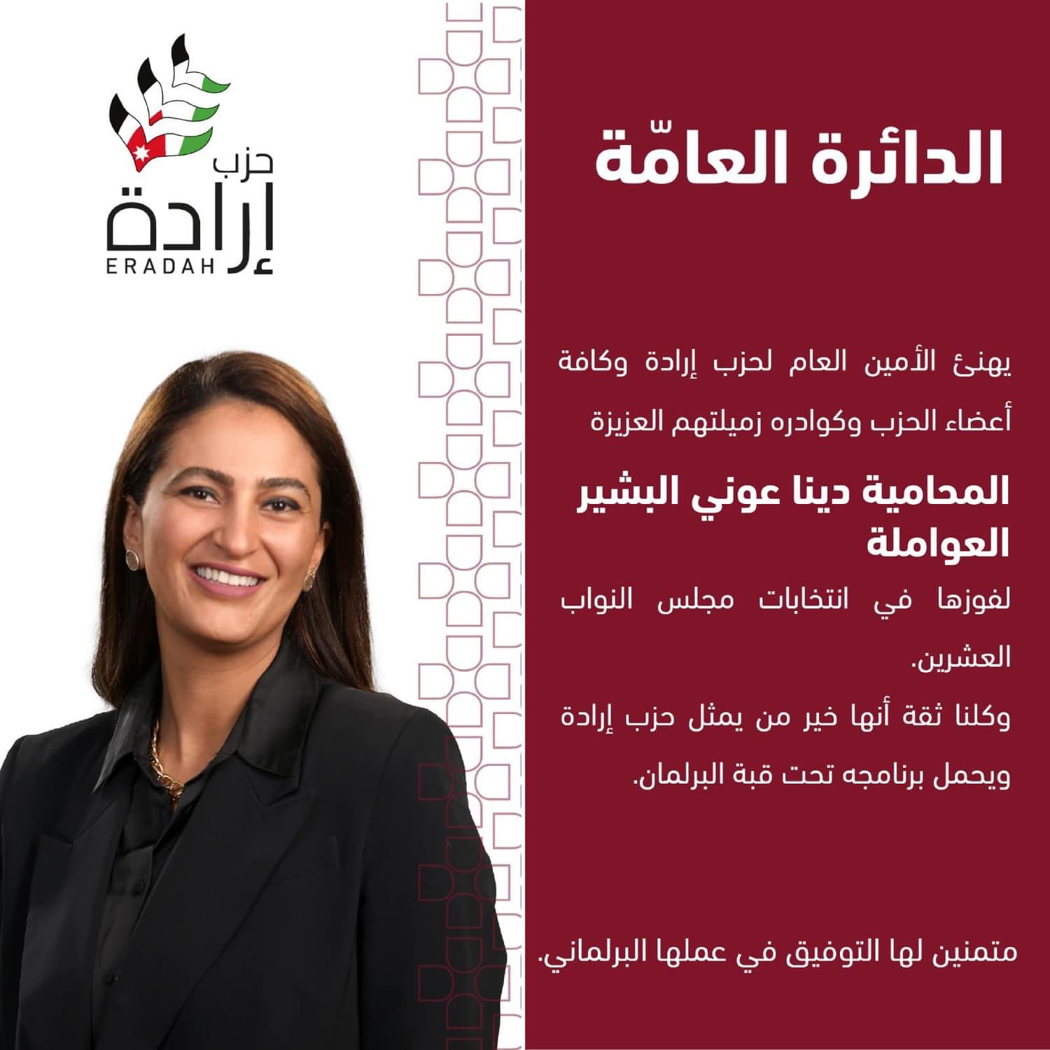 ١٧. المحامية دينا عوني البشير (القائمة العامة )