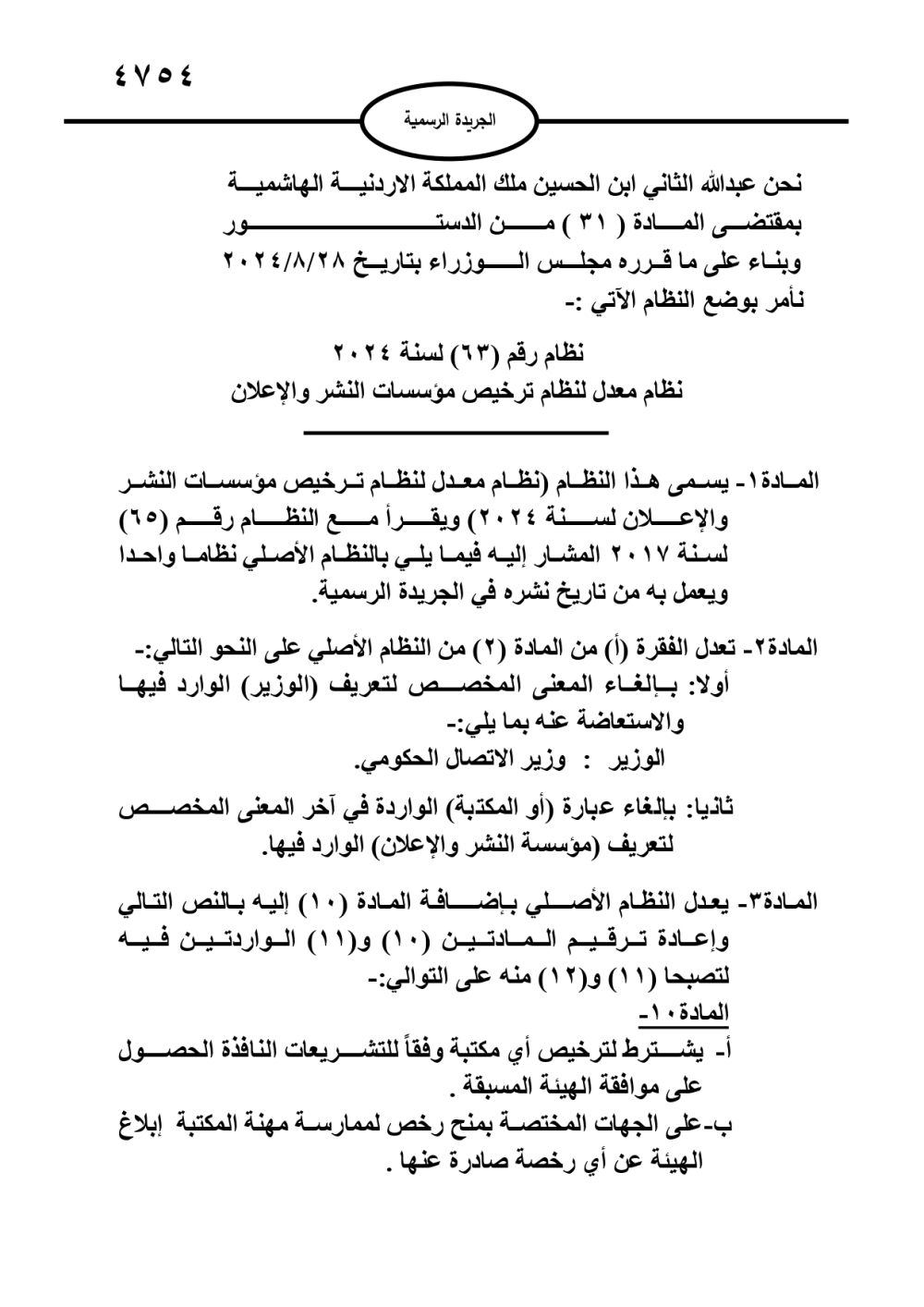 صدر في الجريدة الرسمية اليوم الأحد النظام المعدل لترخيص مؤسسات النشر والإعلان. وتاليا التفاصيل: