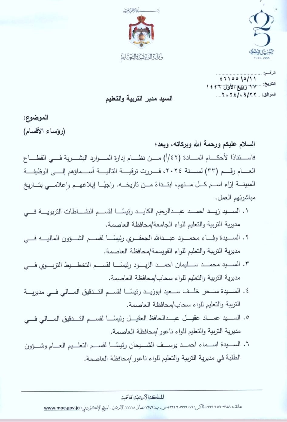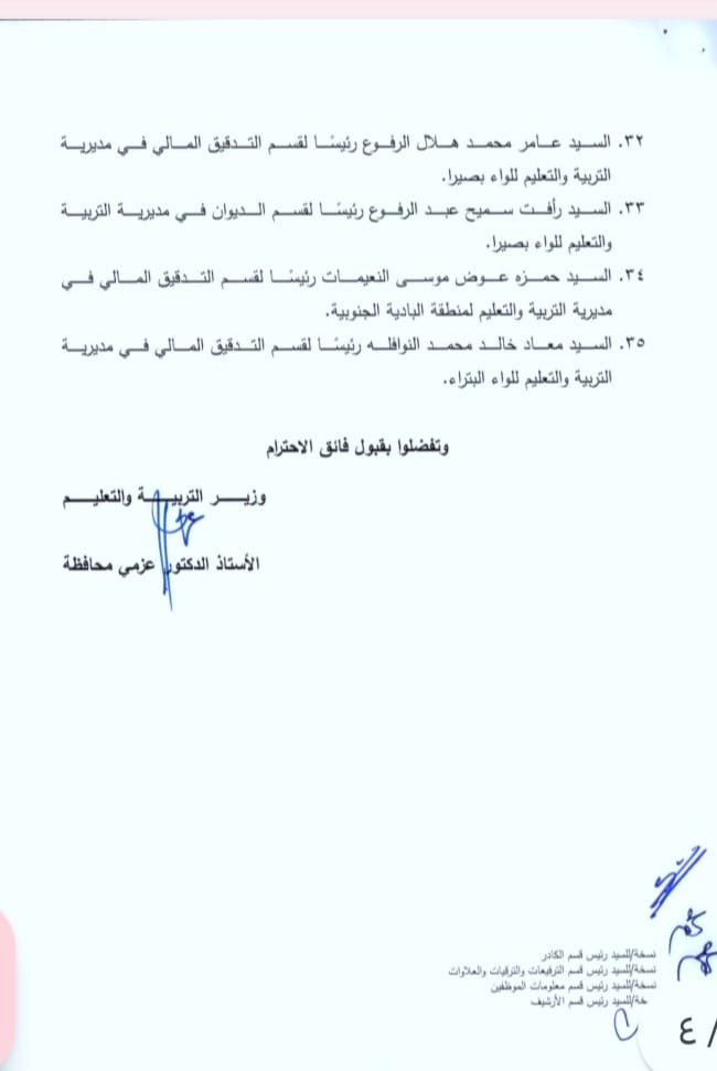 محافظة يجري تشكيلات في مديريات التربية - اسماء