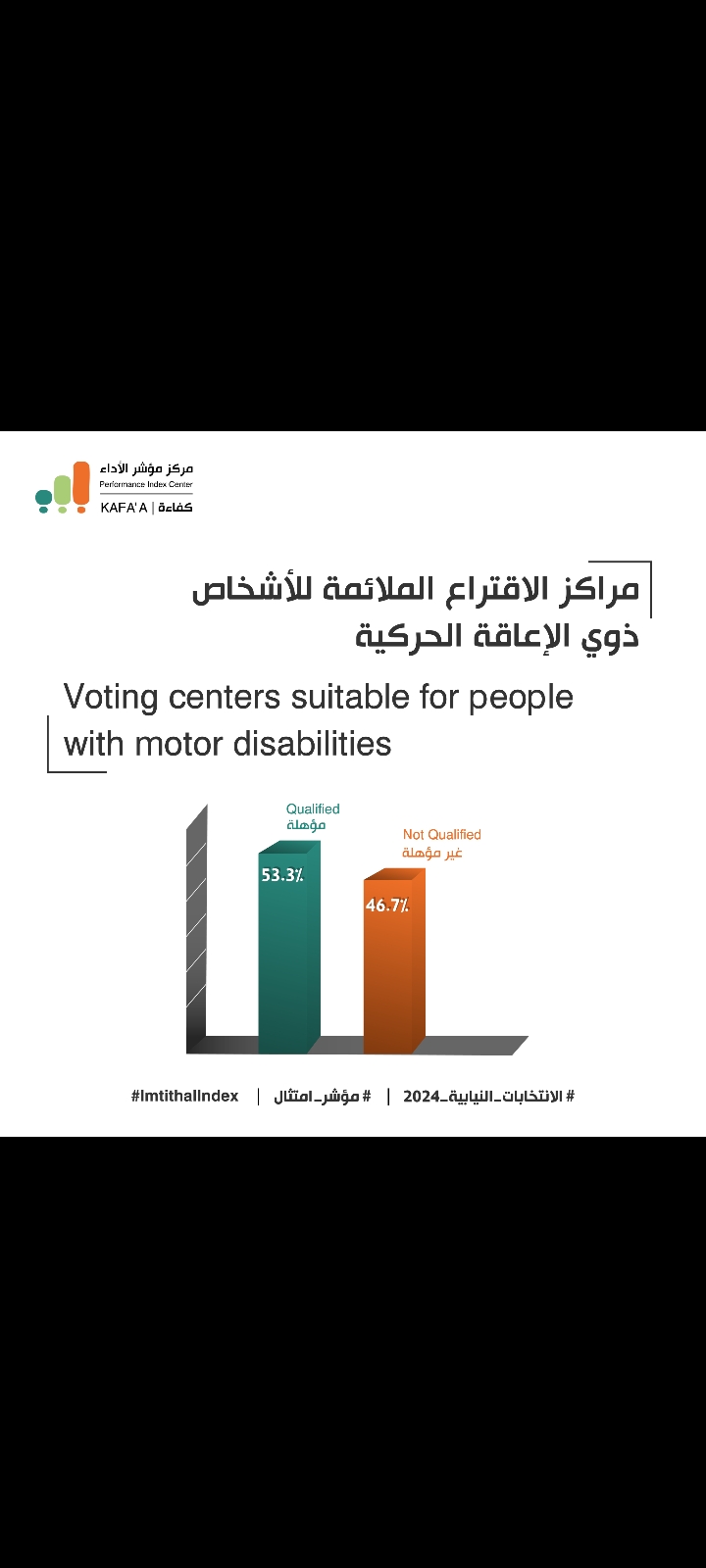 5- ضمن فئة المواطنين ذوي الإعاقة يسجل وجود ضعف في البنى التحتية المهيئة لخدمتهم في مراكز الاقتراع.