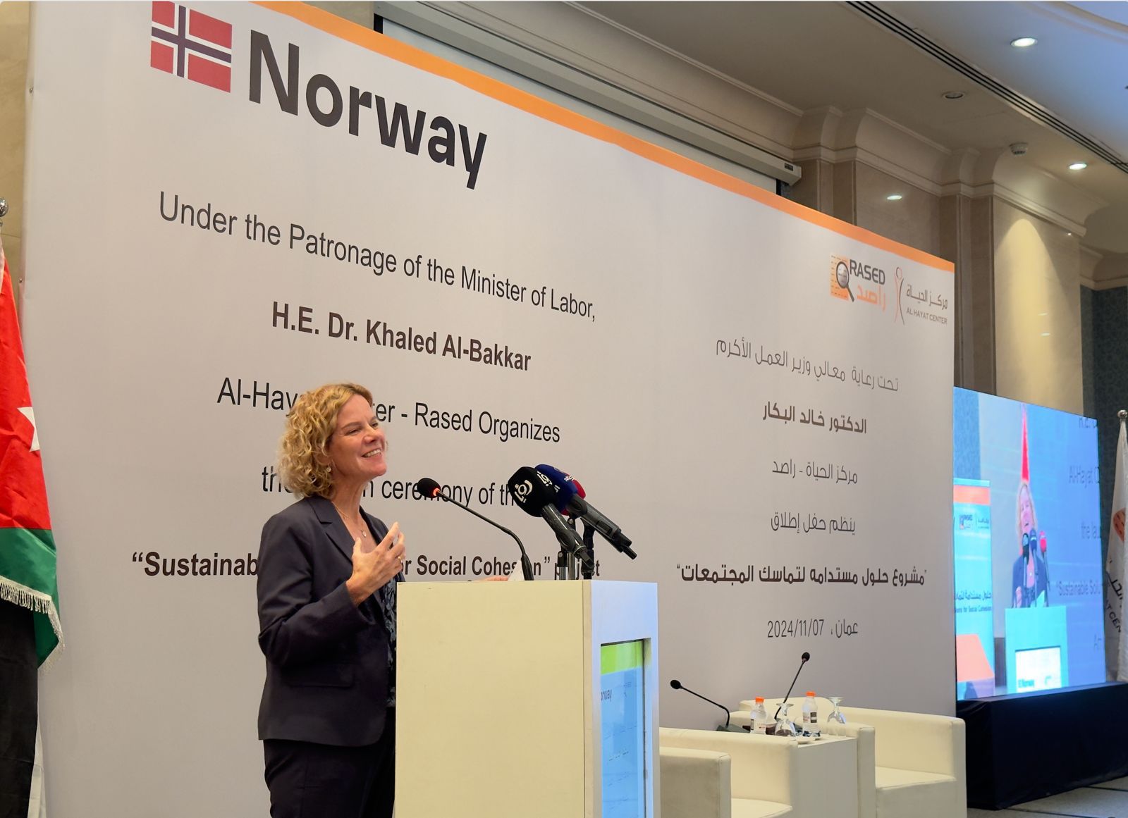 نائبة السفير النرويجي أشادت بالإنجازات المحققة في إطار مشروع حلول مستدامة لتماسك المجتمعات وأعربت عن فخر النرويج بالمساهمة في هذا التعاون. كما أكدت أن المشروع أسفر عن تمكين اقتصادي لمئات النساء من خلال تزويدهن بالأدوات والمهارات اللازمة لتحسين حياتهن وتعزيز مساهمتهن في المجتمع.