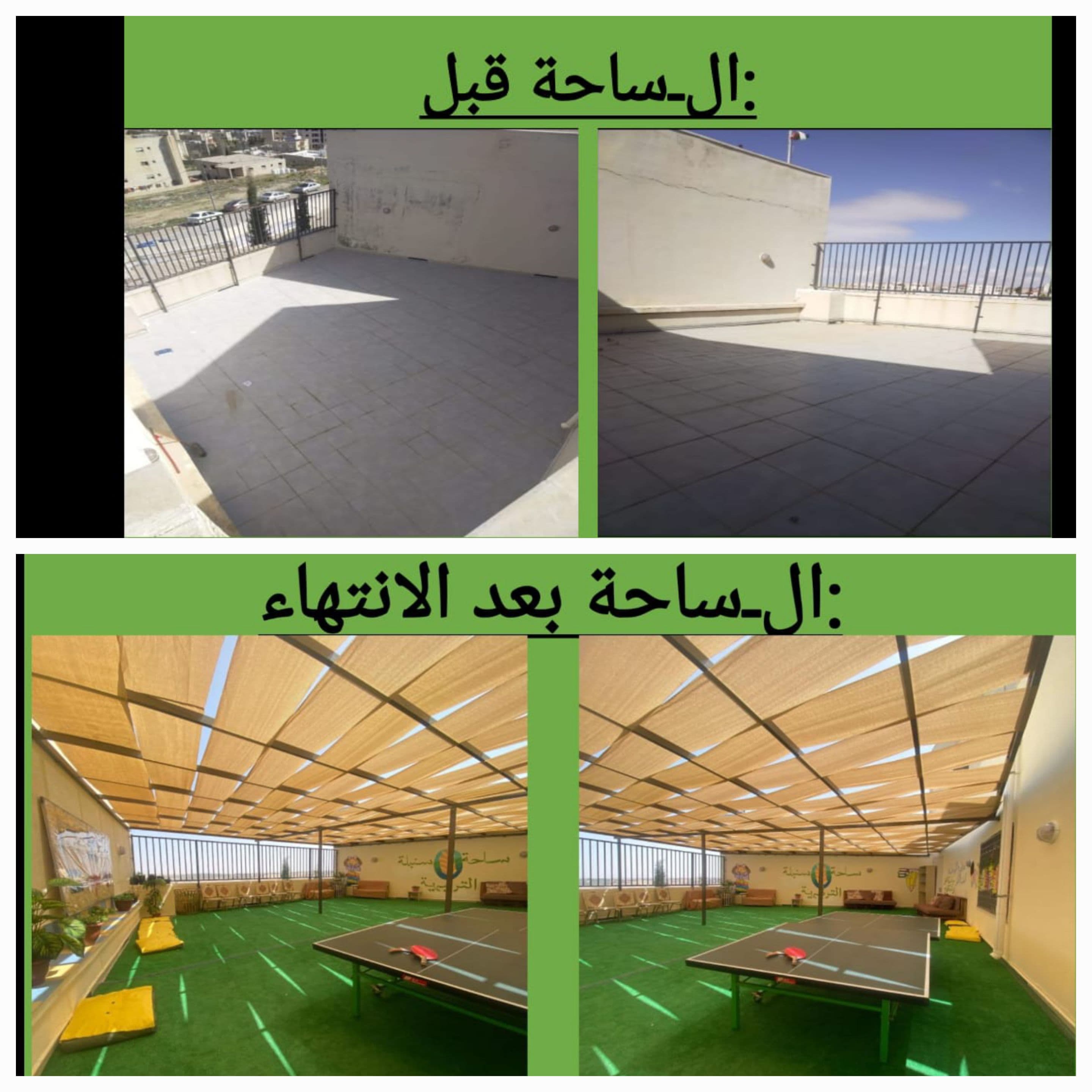 بتوفير بيئة مدرسية آمنه وصحية ونظيفة من خلال استغلال مساحة 100م في الطابق الثالث بتركيب مظلة علوية وفرش الأرضيات وتقسيمها إلى أركان خاصة للقراءة والرياضة والترفيه حتى أصبحت هذه الساحة الآن جزءا لا يتجزأ من أركان المدرسة وخففت العبء عن ساحة المدرسة الرئيسية وبعض المرافق الاخرى وايضا مكانا لتنفيذ العديد من الأنشطة المهمة والترفيهية ،