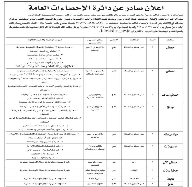 أعلنت عدداً من الوزارات والمؤسسات الرسمية، اليوم الأحد، عن حاجتهم لتعبئة عدد من الوظائف الشاغرة ، فيما دعت عددًا من المرشحين لإجراء المقابلات الشخصية ، في الوظائف التي سبق التقديم عليها .