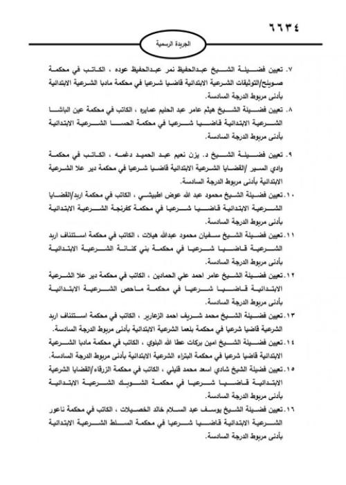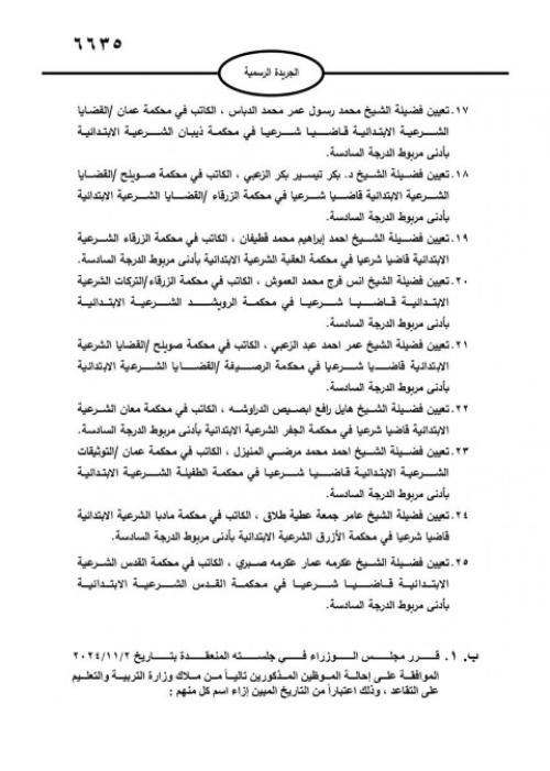 صدرت في عدد الجريدة الرسمية اليوم الأحد، الإرادة الملكية السامية بالموافقة على قرار المجلس القضائي الشرعي بتعيين قضاة شرعيين.