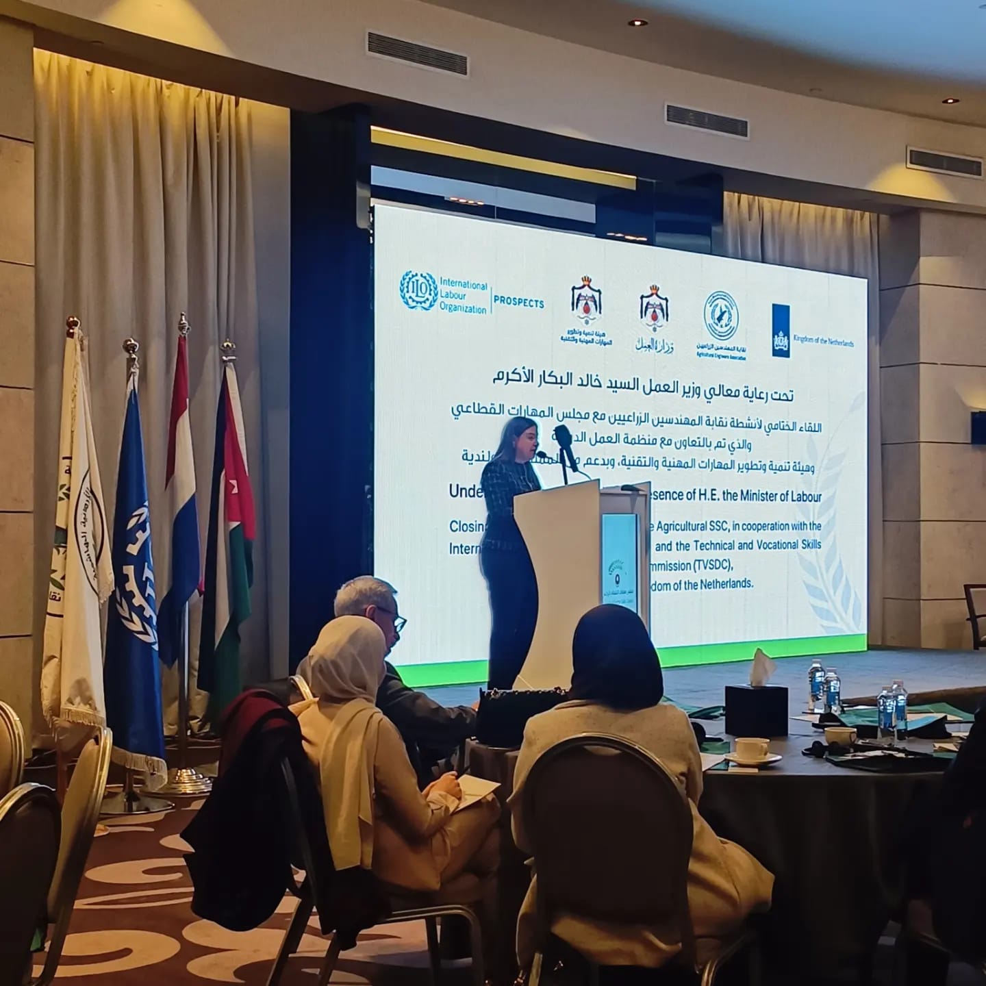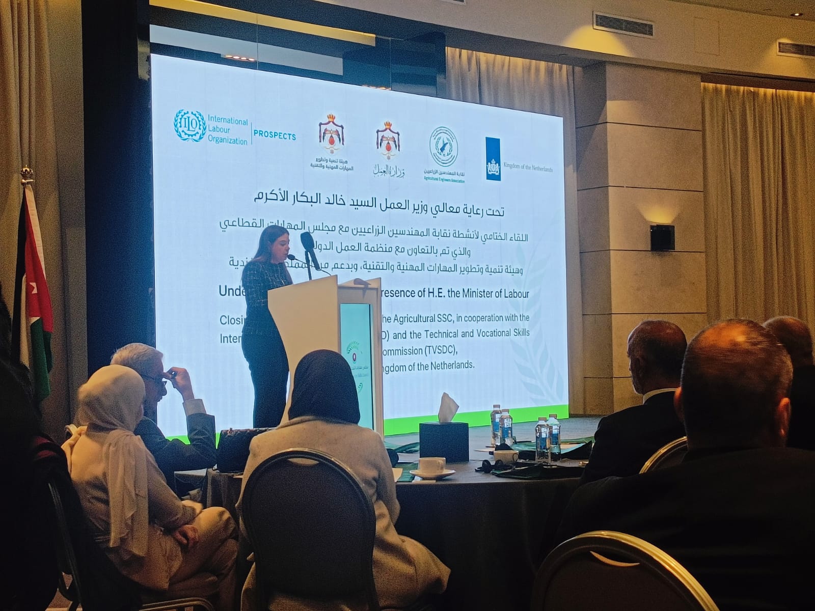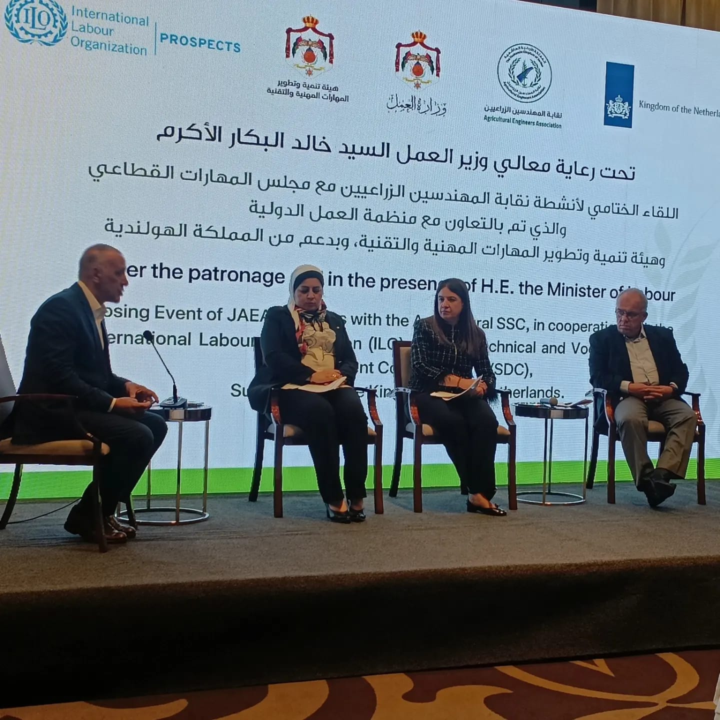 عقدت نقابة المهندسين الزراعيين تحت رعاية وزير العمل خالد البكار في العاصمة الأردنية عمّان بفندق روتانا اللقاء الختامي لمشروع تعزيز قدرات مجلس مهارات القطاع الزراعي بالتعاون مع منظمة العمل الدولية وهيئة تنمية وتطوير المهارات المهنية والتقنية وبدعم من المملكة الهولنديةلتسليط الضوء على الإنجازات الرئيسية التي تحققت خلال فترة المشروع ومناقشة التحديات المستقبلية وسبل استدامة عمل مجالس المهارات القطاعية و قالت رئيسة هيئة تنمية وتطوير المهارات المهنية والتقنية الدكتورة رغدة الفاعوري ، أن الهيئة ماضية في بناء شراكات استراتيجية بهدف تنمية وتطوير مهارات العاملين في القطاع الزراعي.وأضافت الفاعوري خلال رعايتها، اليوم الأحد ، اللقاء الختامي لمشروع (تعزيز قدرات مجلس مهارات القطاع الزراعي) مندوبة عن وزير العمل ، “أننا ومن وحي كتاب التكليف السامي للحكومة، والاهتمام الملكي بالتعليم المهني والتقني والقطاع الزراعي، حرصت الهيئة على تعزيز العمل المشترك مع ممثلي القطاع من خلال هذا المشروع الذي خلص إلى مخرجات مهمة تتمثل في تطوير الكفاءات المهنية الزراعية، وإعداد معايير ومناهج تدريبية تتناسب مع احتياجات السوق”.وأشارت إلى أن الهيئة عملت على تعزيز الهوية البصرية للقطاع الزراعي كجزء من الجهود المبذولة لتحسين جاذبية هذا المجال للعاملين والمستثمرين، وإعداد دراسة لخارطة المهن في القطاع الزراعي، بهدف تحديد المهن الرئيسية والفرعية التي يحتاجها سوق العمل في هذا القطاع، ما يسهم في توجيه البرامج التدريبية نحو تطوير الكوادر المطلوبة .من جهته أكد نقيب المهندسين الزراعيين، رئيس مجلس مهارات القطاع الزراعي المهندس علي أبو نقطة، أن تضافر الجهود مع هيئة تنمية وتطوير المهارات المهنية والتقنية، وباقي الشركاء يجسد التعاون المثمر الذي قادنا إلى نجاح هذه التجربة، وسنسعى إلى تكرارها.وأضاف أن مجلس مهارات القطاع الزراعي أصبح بفضل هذا التعاون انموذجا حيا على نجاح الشراكة الاستراتيجية تحت مظلة وطنية.وقال أبو نقطة إن القطاع الزراعي يجمع بين المهارات التقليدية المتوارثة والتكنولوجيا الحديثة، ويحتاج إلى كوادر مدربة ومؤهلة للتعامل مع هذا التداخل الديناميكي بين التراث الزراعي العريق وأحدث التقنيات.بدورها، أكدت المنسقة القطرية لمنظمة العمل الدولية في الأردن والأخصائية الأولى في سياسات التشغيل الإقليمية الدكتورة أمال موافي، أن القطاع الزراعي يعد حجر الأساس في الاقتصاد الأردني ويسهم في تعزيز الأمن الغذائي والحد من معدلات الفقر والبطالة خاصة في المجتمعات الريفية.وأكدت أن جوهر عمل المنظمة مع الحكومة ضمن القطاع الزراعي ينصب على تحسين فرص العمل في القطاع كماً ونوعاً، وتوفير ضمانات الحماية الاجتماعية والسلامة والصحة المهنية، كما دعمت المنظمة من خلال مشروع آفاق تأسيس مجلس مهارات القطاع الزراعي عام 2019 وستستمر في تقديم الدعم لهذا المجلس بما ينعكس إيجابا على تنمية وتطوير مهارات العاملين في القطاع وزيادة أعداد المشتغلين فيه.