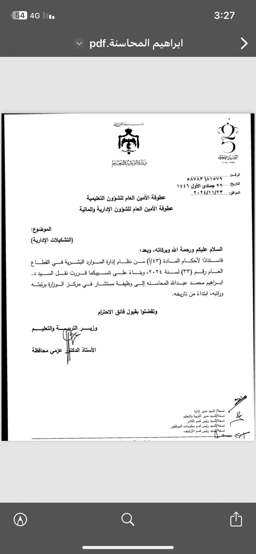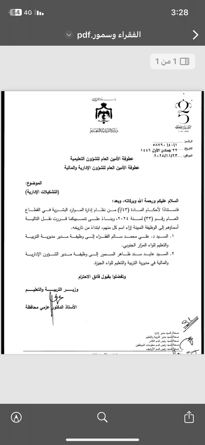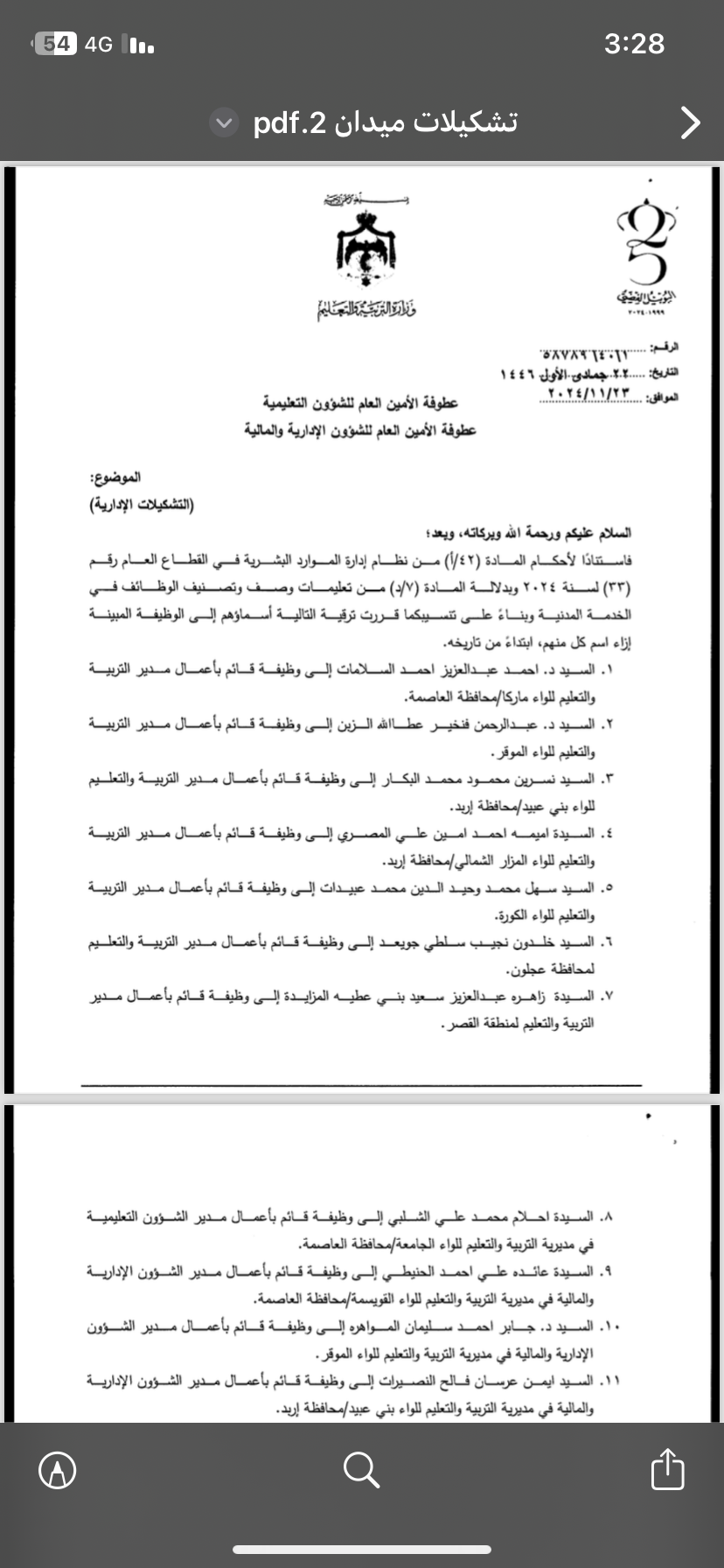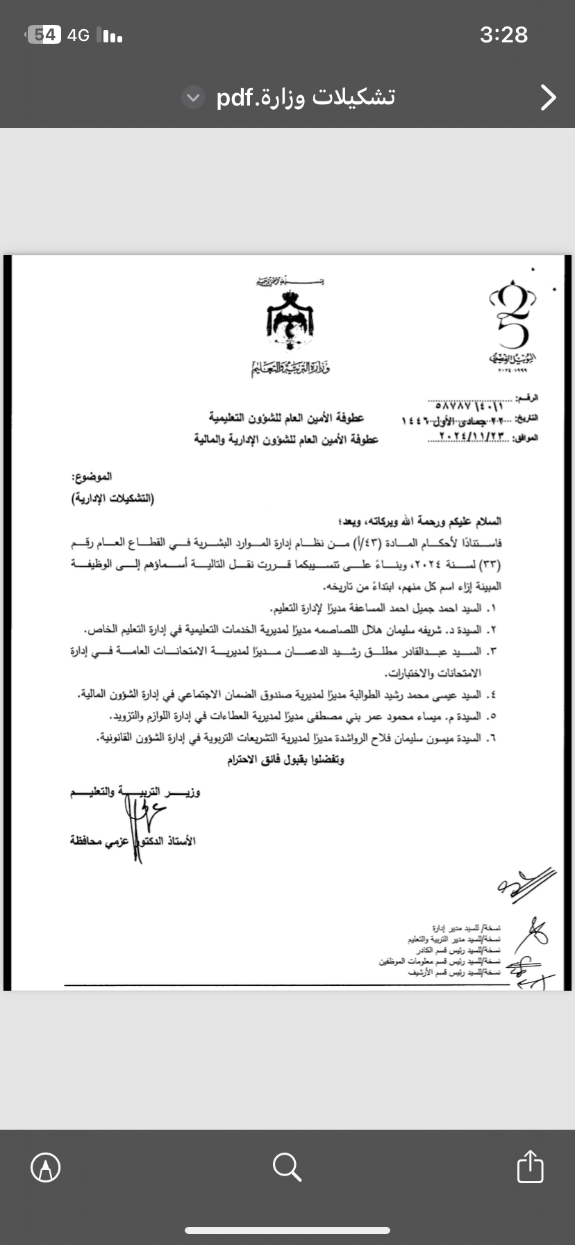 عاجل - تشكيلات إدارية موسعة في وزارة التربية والتعليم (أسماء)