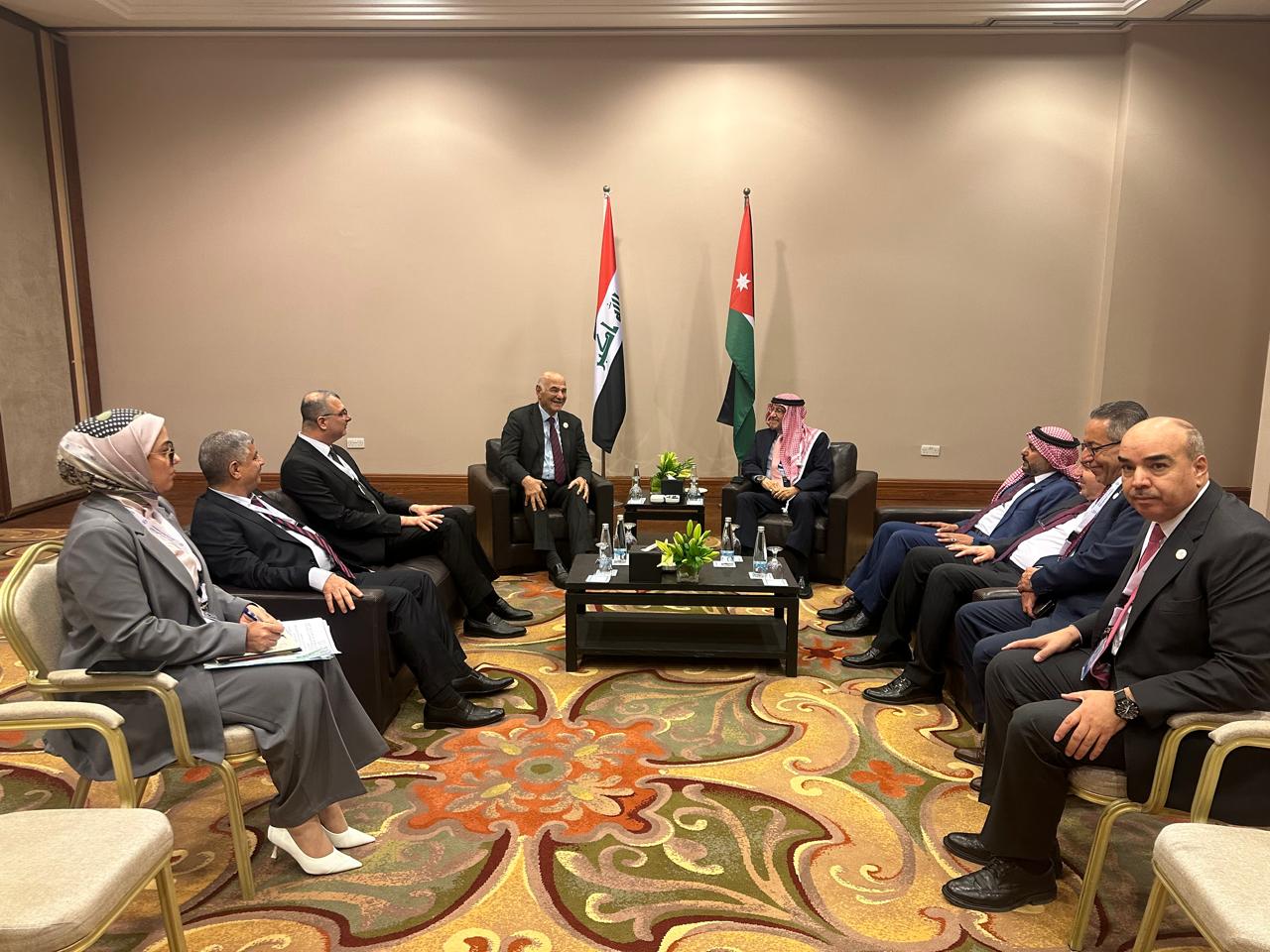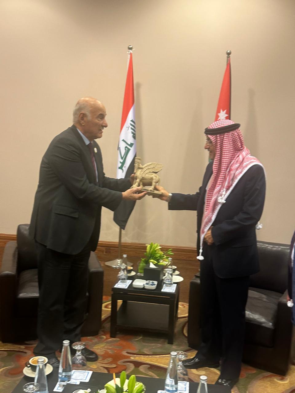 إلتقى وزير المياه والري المهندس رائد ابو السعود اليوم الاربعاء على هامش اجتماعات المجلس الوزاري العربي وزير الموارد المائية بالجمهورية العراقية السيد/ عون ذياب عبد الله وعدد من المسؤولين العراقيين بحضور الامناء العامون وعدد من المسؤولين.وقد أعرب الوزير ابو السعود عن ترحيبه بالوزير العراقى مشيدا باوجه التعاون المشترك مستعرضا التحديات المائية الاردنية واوجه التعاون المشترك .ومن جانبه اعرب الوزير العراقي السيد ذياب عن سعادته بهذا اللقاء الذي يؤكد على قوة العلاقات الثنائية بين البلدين فى كافة المجالات مشيدا بجهود الاردن في حسن تنظيم المؤتمر وكرم الضيافة.وتم خلال اللقاء التباحث حول تعزيز التعاون بين البلدين فى مجالات معالجة المياه والصرف الصحي وإعادة استخدام مياه الصرف الصحي ، والاحواض المائية الجوفية وتفعيل مذكرة تفاهم بين البلدين الشقيقين وابدى الجانب العراقي اهمية نقل الخبرة الاردنية الى الجانب العراقي خاصة في الاستفادة من المياه المعالجة في الزراعة .