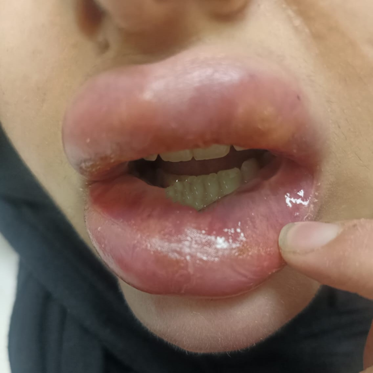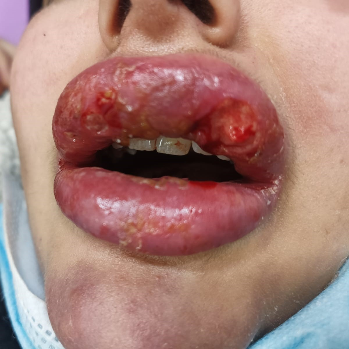 وبدأ التورم يظهر سريعًا على وجه الفتاة، حيث أصبح من المستحيل رؤية أسنانها نتيجة الانتفاخ المفرط والتشوه الواضح. وعلى الرغم من توجه الفتاة لعدد من الأطباء للحصول على العلاج، بما في ذلك استخدام أدوية ومضادات التهاب مثل الكورتيزون، إلا أن حالتها استمرت في التدهور.