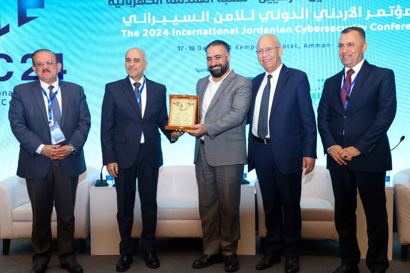 واوضح المحارمة ان الجهود الوطنية ساهمت في رفع ترتيب الاردن في مؤشر الامن السيبراني من منظمة الاتصالات الدولية التابعة للأمم المتحدة، حيث تم وضع الاردن ضمن الفئة الاولى الاعلى عالميا في التصنيف، حيث تقدم الاردن من المركز 71 الى المركز 27 من بين 194 دوله تشارك في هذا المؤشر.ومن جانبه دعا نقيب المهندسين م.احمد سمارة الزعبي إلى ميثاق شرف انساني عالمي يحمي الانسان من الاستخدامات غير الانسانية للتكنولوجيا الحديثة، خاصة وان الانسان هو محور الحياة ومحور العلم.واكد على ضرورة الاستعداد ومواكبة كل ما هو حديث في مجال الأمن السيبرانية خاصة وان الحروب والانتصارات والتنمية في العالم قائمه على تطورات الذكاء الاصطناعي والاستفادة من تداعياته. وأشار سمارة ان الأزمة الإقتصادية الخانقة وارتفاع نسب البطالة وغياب التوزيع العادل والعدالة الإجتماعية من أكبر التحديات التي يجب أن نواجهها، ولفت إلى وجود العديد من المشاريع الكبيرة مثل الخط الناقل والمدينة الجديدة وتوسعة مصفاة البترول الطريق العلوي لشارع الملك عبدالله، والتي من شأنها دفع عجلة الاقتصاد والتنمية والتشغيل.
