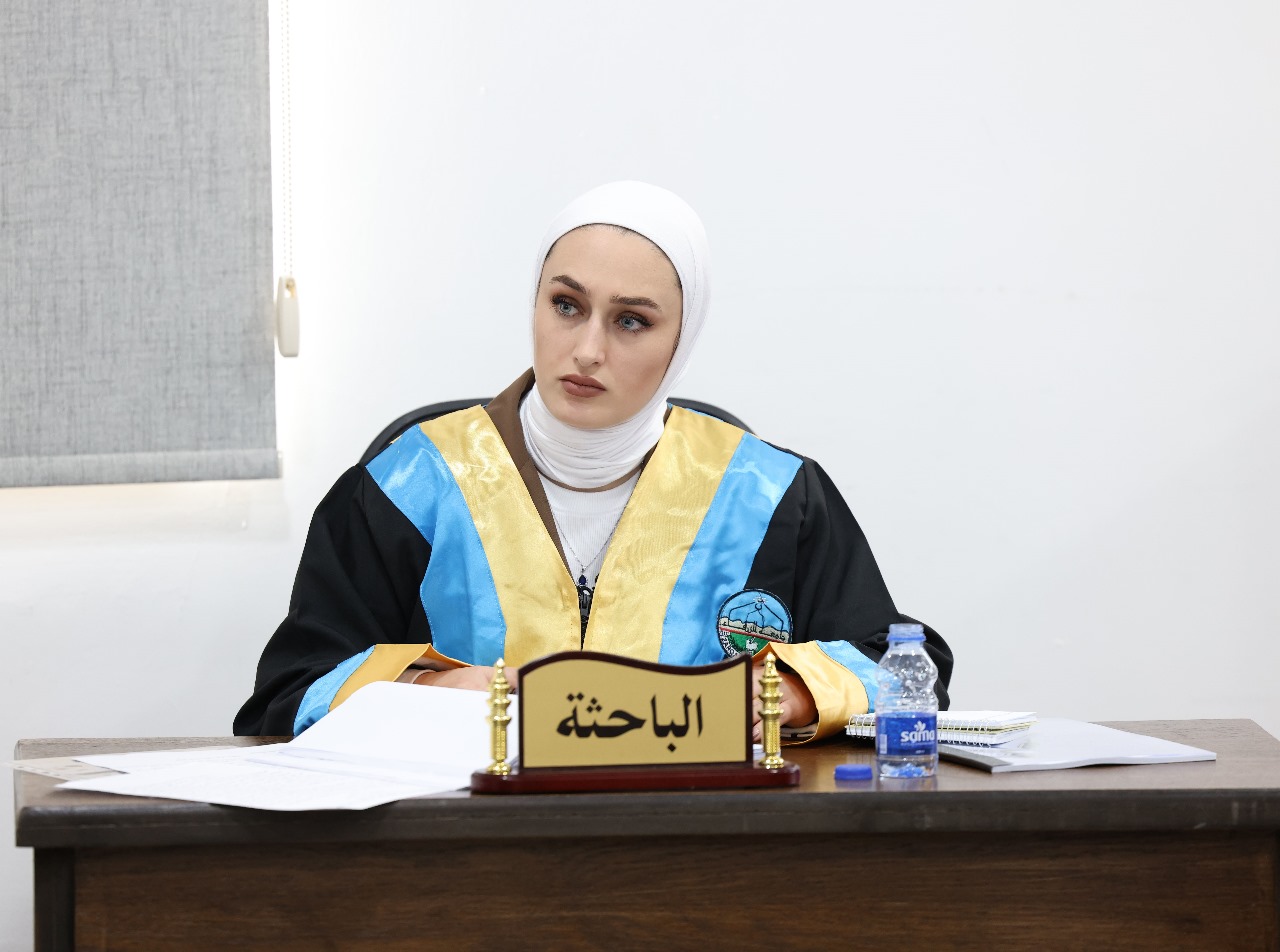 •الدكتور تحسين شرادقة، مناقشًا داخليًا. • الأستاذ الدكتور هاني أخو رشيدة، نائب رئيس جامعة آل البيت، مناقشًا خارجيًا.وأشادت اللجنة بموضوع الرسالة المستحدث وأكدت أنه يستحق النشر والاستفادة منه كمرجع علمي في الأبحاث الأكاديمية. كما أبدت إعجابها بالمستوى العلمي والتحليل الدقيق الذي قدمته الطالبة، ووصفت الرسالة بأنها واحدة من الدراسات التي تسهم في تعزيز فهم العلاقة بين المنصات الرقمية والمشاركة السياسية.خاصة في ظل التحولات الاجتماعيةوالسياسية المتسارعة.وحضر المناقشة عدد من أساتذة الجامعة وشخصيات أكاديمية بارزة، بالإضافة إلى أفراد عائلة الطالبة، الذين عبّروا عن فخرهم بهذا الإنجاز الكبير.