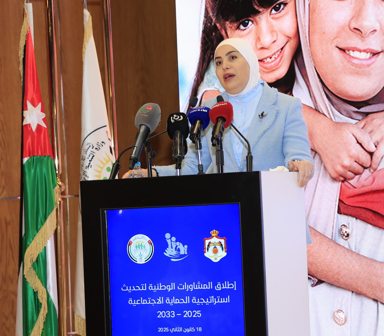 إفتتحت وزيرة التنمية الاجتماعية وفاء بني مصطفى، اليوم السبت، أعمال إطلاق المشاورات الوطنية لتحديث الخطة الإستراتيجية الحماية الإجتماعية 2025-2033, بحضور وزراء التربية والتعليم التعليم العالي والبحث العلمي د. عزمي محافظة، والصحة د. فراس الهواري والتخطيط والتعاون الدولي زينة طوقان، وعدد من النواب والأعيان، وأعضاء اللجنة التوجيهية العليا للإستراتيجية الوطنية للحماية الإجتماعية، وخبراء ومختصين وممثلين عن مؤسسات المجتمع المدني، ومنظمات دولية.وقالت بني مصطفى إن توجيهات جلالة الملك عبدالله الثاني ابن الحسين لحكومة الدكتور جعفر حسان في كتاب التكليف السامي جاءت للعمل على تحديث الاستراتيجية الوطنية للحماية الاجتماعية والبدء بتنفيذها بما يتماشى مع رؤية التحديث الاقتصادي وبرنامجها التنفيذي، مشيرة إلى أن تحديث الاستراتيجية ضمن مسارات الإصلاح الثلاث "السياسية والاقتصادية والإدارية".