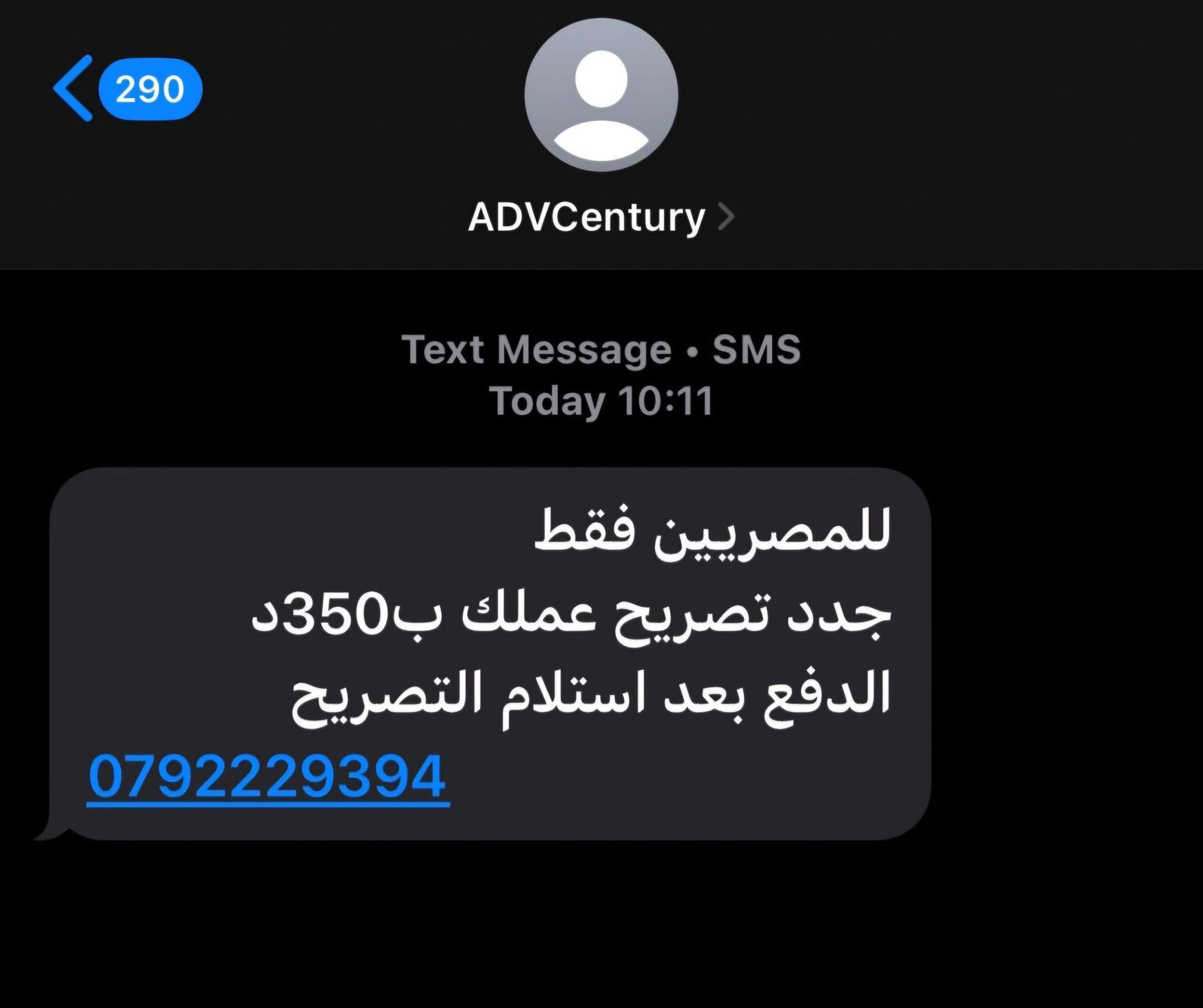 حذرت وزارة العمل الأردنية من رسالة نصية يتم تداولها عبر الهواتف المحمولة، تدعي إمكانية تجديد تصاريح العمل مقابل مبلغ مالي. وأكدت الوزارة أن هذه الرسالة "كاذبة 100%" ولا أساس لها من الصحة.