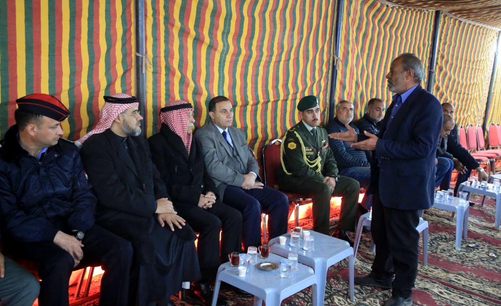 وفي منطقة الحلابات، بمحافظة الزرقاء، نقل العيسوي، خلال زيارته بيت عزاء الرائد المتقاعد فيصل يوسف الحناحنة، إلى ذوي الفقيد، وعموم عشيرة الحناحنة، سائلا المولي عز وجل أن يتغمده بواسع رحمته.