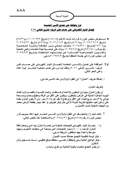 صدر قرار بالموافقة على تعديل الأسس المعتمدة لإيصال التيار الكهربائي على حساب فلس الريف. وتاليا نص الأسس: