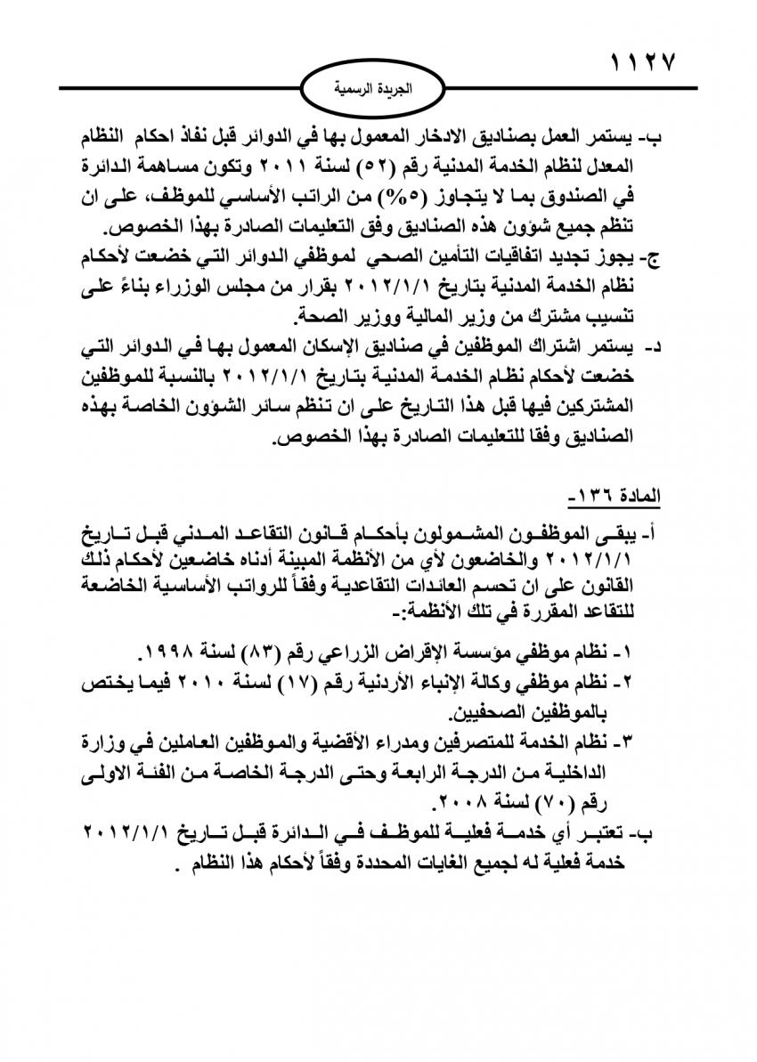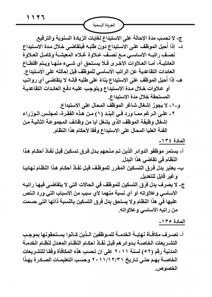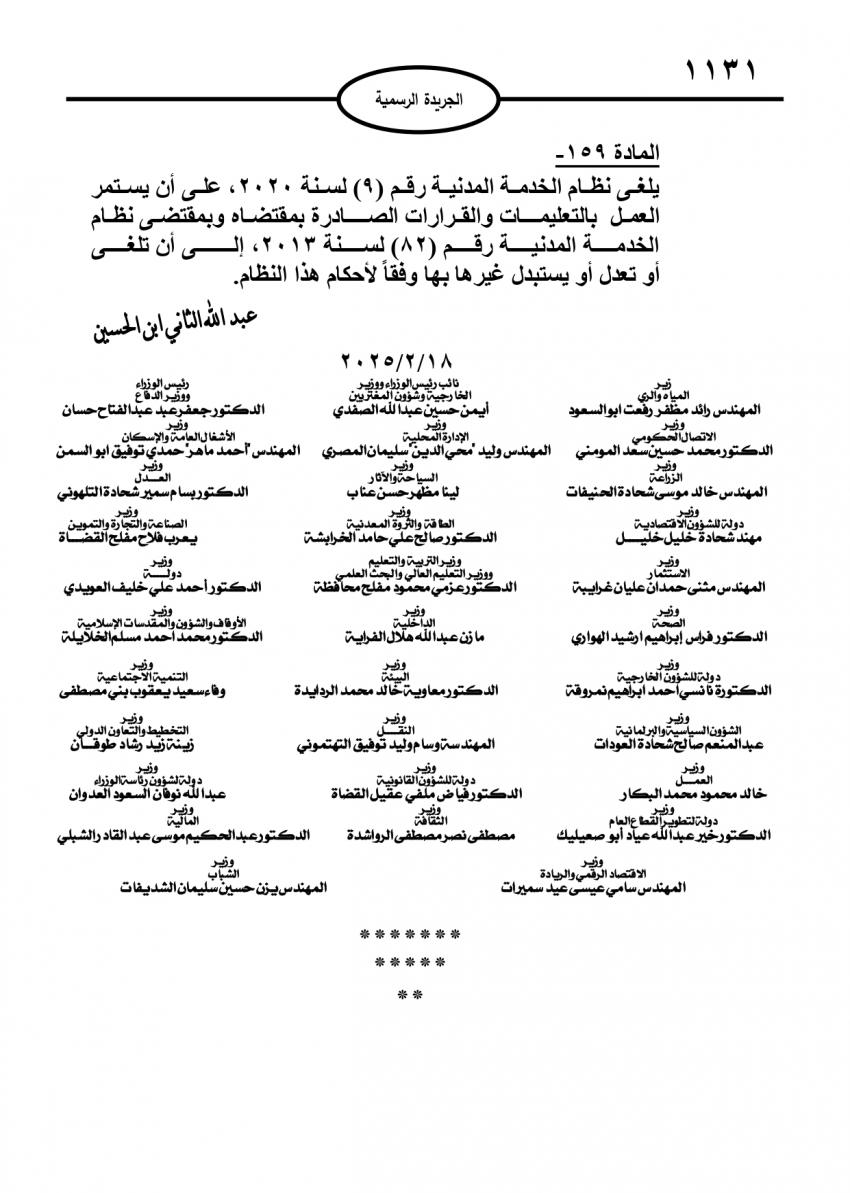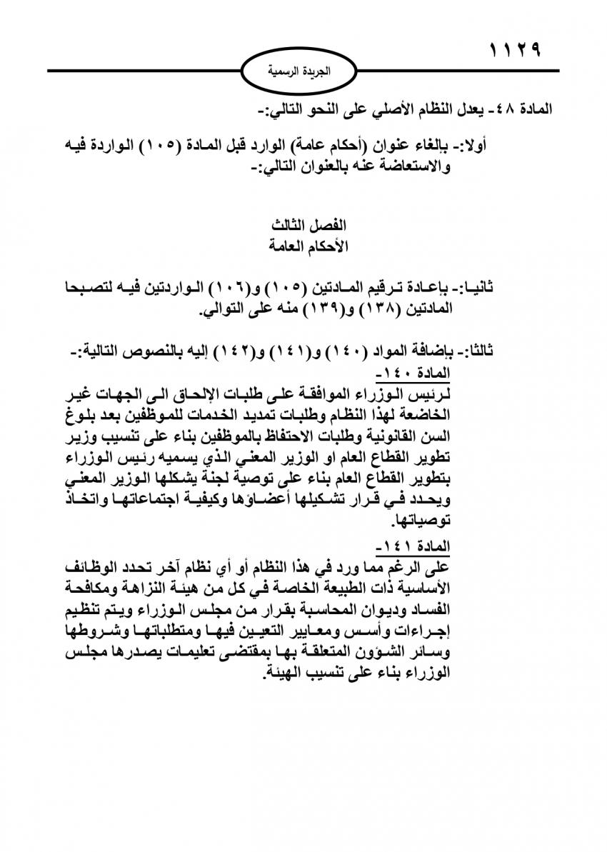 صدر في عدد الجريدة الرسمية اليوم الاحد، نظام معدل لنظام إدارة الموارد البشرية في القطاع العام.