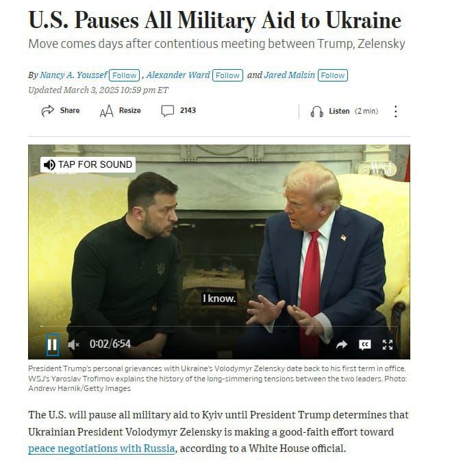 فاينانشيال تايمز: "قرار ترامب سيضفي طابع العجلة على جهود العديد من العواصم الأوروبية لتعزيز دعمها العسكري لكييف، إذ أن توقف المساعدة الأمريكية لفترة طويلة قد يمنح القوات الروسية ميزة كبيرة في ميدان المعركة".